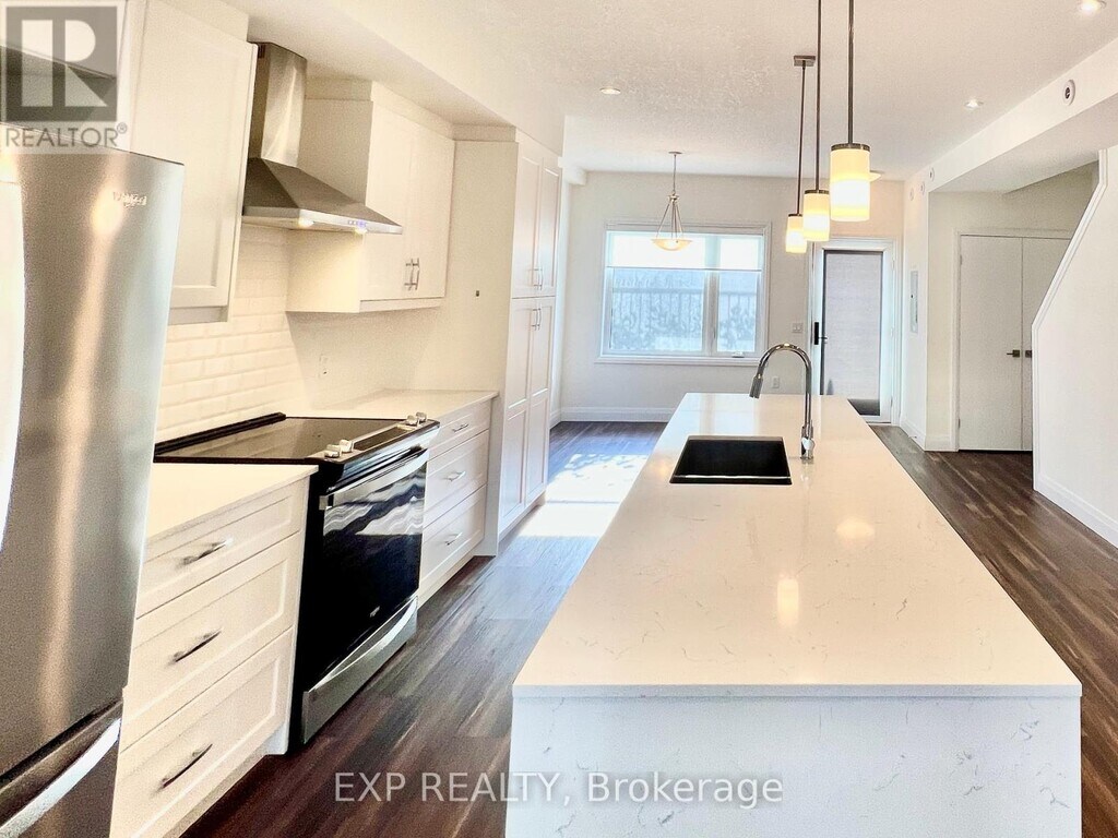 Move-in ready today! This brand-new 1,413 sq. ft. end-unit stacked townhouse in Guelphs desirable South End offers bright,open-concept living with a spacious main area and a beautifully upgraded kitchen featuring a granite waterfall island with seating,KitchenAid appliances,quartz counters,backsplash,and modern light fixtures. Designed for comfort and style,the home includes 2 large bedrooms and 2 bathrooms,with added conveniences such as one parking spot with on-site EV charging and a private storage unit just outside the home for bikes and other items. Ideally located just 9 minutes from Highway 401 and close to top-rated schools,groceries,and amenities,this sought-after South End community is known for its family-friendly atmosphere,abundance of parks and trails,excellent shopping,and easy commuter access making it one of Guelphs most vibrant and convenient neighbourhoods. (id:52069) ID#: 2165246