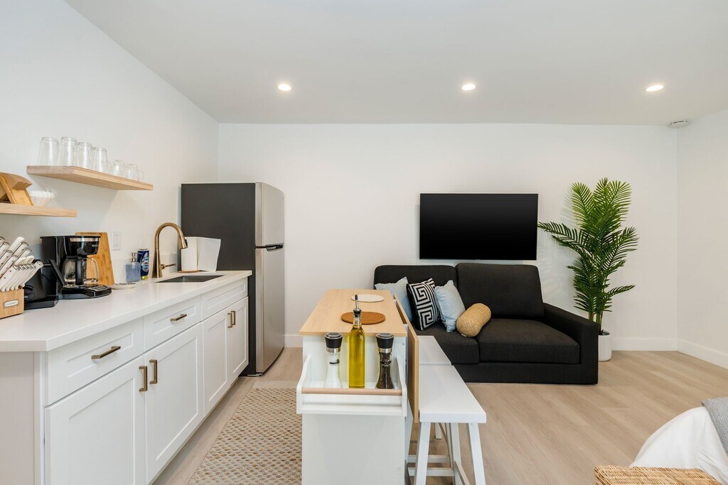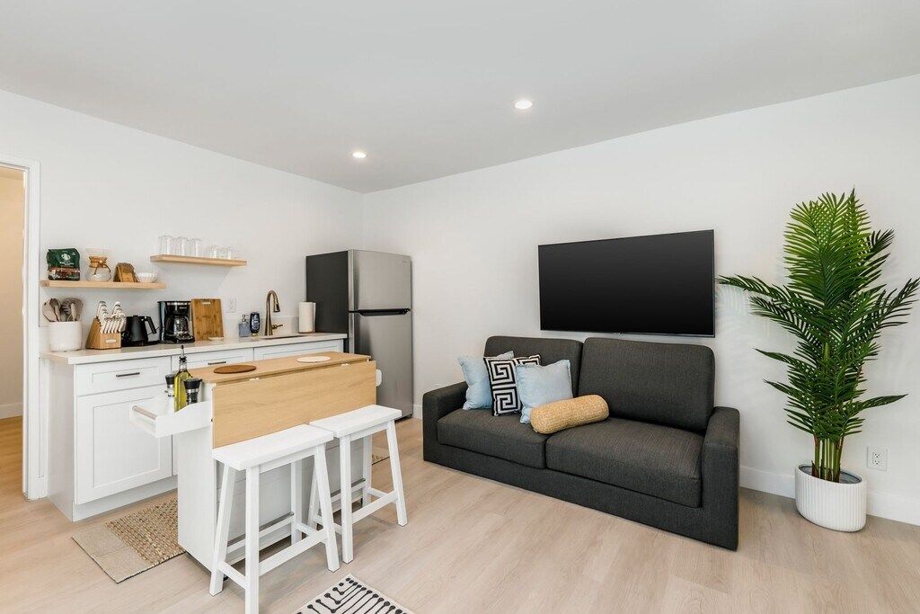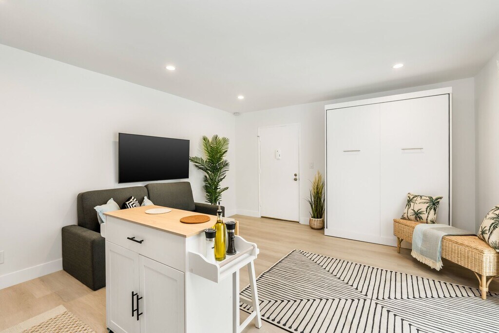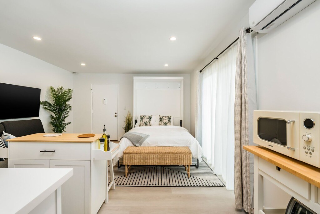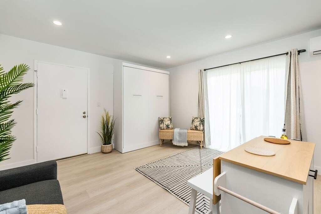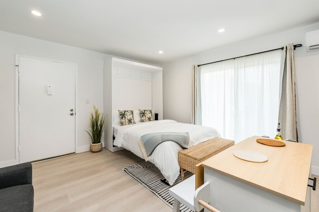$1,200 Move-In Special | Modern Furnished Studio with Balcony – Steps from Venice Beach Welcome to your new coastal retreat in Marina del Rey. Take advantage of a limited-time $1,200 move-in special and enjoy this fully furnished first-floor studio just moments from the sand. The open layout includes a Murphy bed, couch, and TV, creating a comfortable space that’s move-in ready. The kitchen comes with a stainless steel refrigerator, microwave, toaster oven, toaster, electric kettle, coffee maker, and utensils for easy meal prep. Step onto your private balcony and take in the refreshing Marina breeze—perfect for morning coffee or relaxing evenings. Added conveniences include window coverings, wall air conditioning, and thoughtful details like rugs, plants, and storage bins. This prime location puts you steps from Venice Beach, Fat Sal’s Deli, Starbucks, Orangetheory Fitness, and the Marina del Rey Farmer’s Market. Spend weekends at Mother’s Beach, explore marina walking paths, or enjoy dining at local favorites like The Cheesecake Factory—all just minutes away. Experience modern coastal living where style meets convenience in one of LA’s most desirable neighborhoods. Highlights $1,200 Move-In Special Furnished first-floor studio in prime Marina del Rey location Private balcony for outdoor relaxation Stainless steel refrigerator and microwave included Murphy bed, TV, and couch for immediate comfort Wall air conditioning and window coverings Updated interior with essentials included Walking distance to Venice Beach, Mother’s Beach, and Marina dining