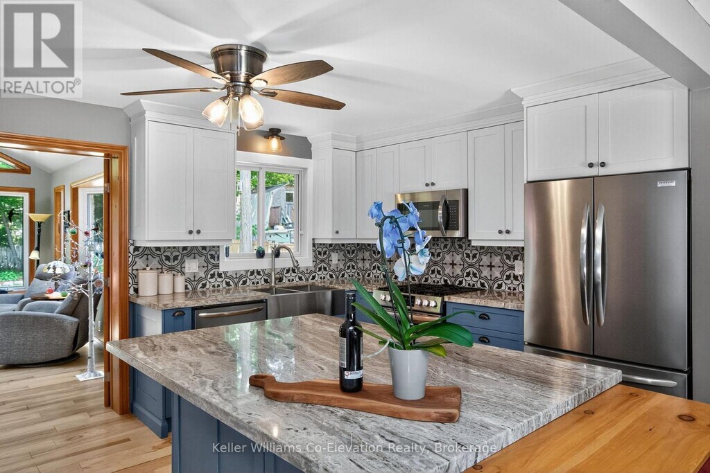Beautiful turn-key bungalow with approximately 2000 sq ft of living space for lease near Farlain Lake,offering a peaceful,private setting on a large fully fenced lot surrounded by mature trees. The bright open-concept main floor features 3 spacious bedrooms,an updated kitchen with quartz countertops and dining area,and a sun-filled four-season room with walkout to a large deck and landscaped backyard-perfect for relaxing or entertaining. The finished basement includes a large rec room,additional bathroom,and ample storage. Plenty of parking with a long double-car driveway. Freshly painted throughout with updated trim and a newer roof (2019).Ideally located steps from Awenda Provincial Park trails,OFSCA trail system,a private boat launch,and nearby marinas. A move-in ready home perfect for tenants seeking comfort,privacy,and an outdoor lifestyle. (id:52069) ID#: 1391525