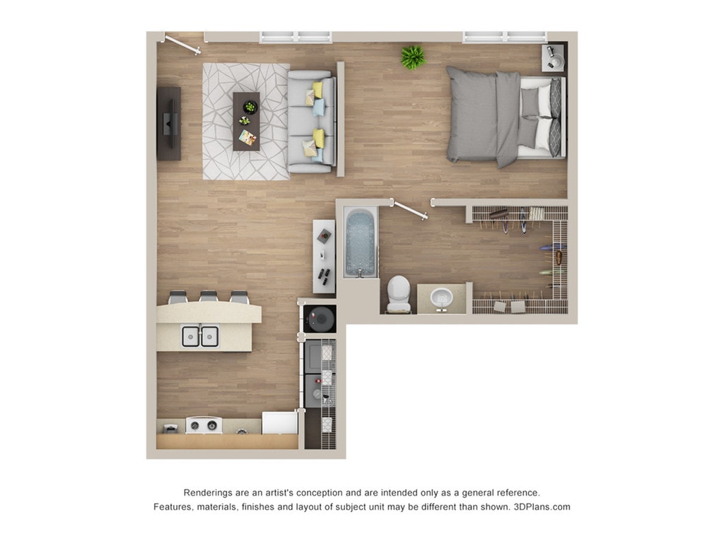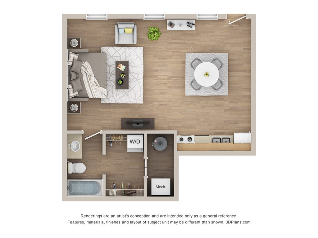 Studio, 1 Bath, 606 sq ftModel Gallery