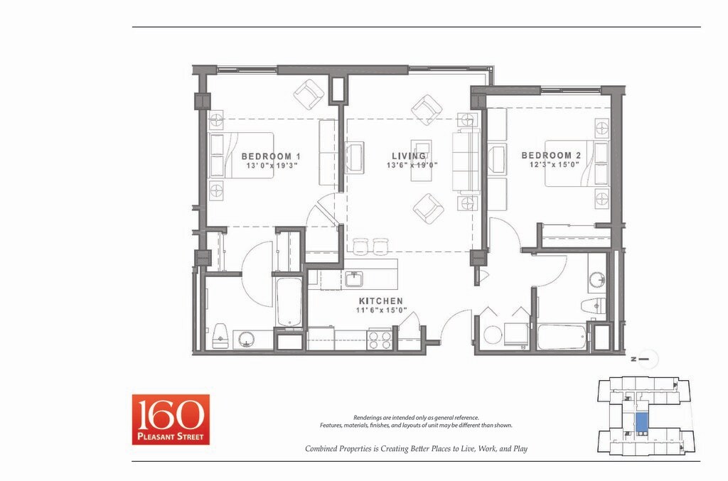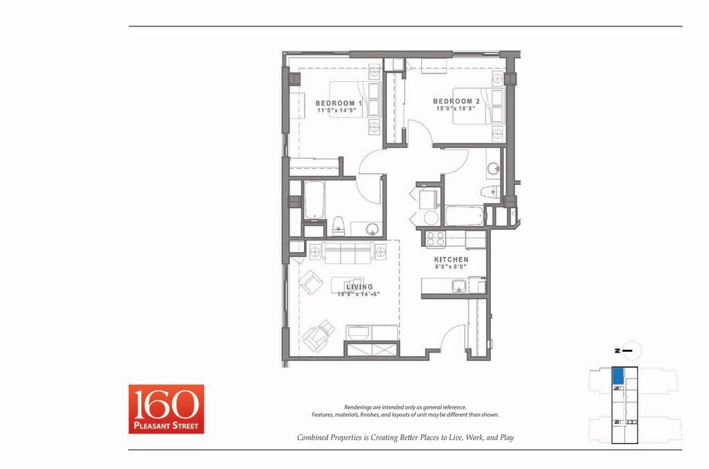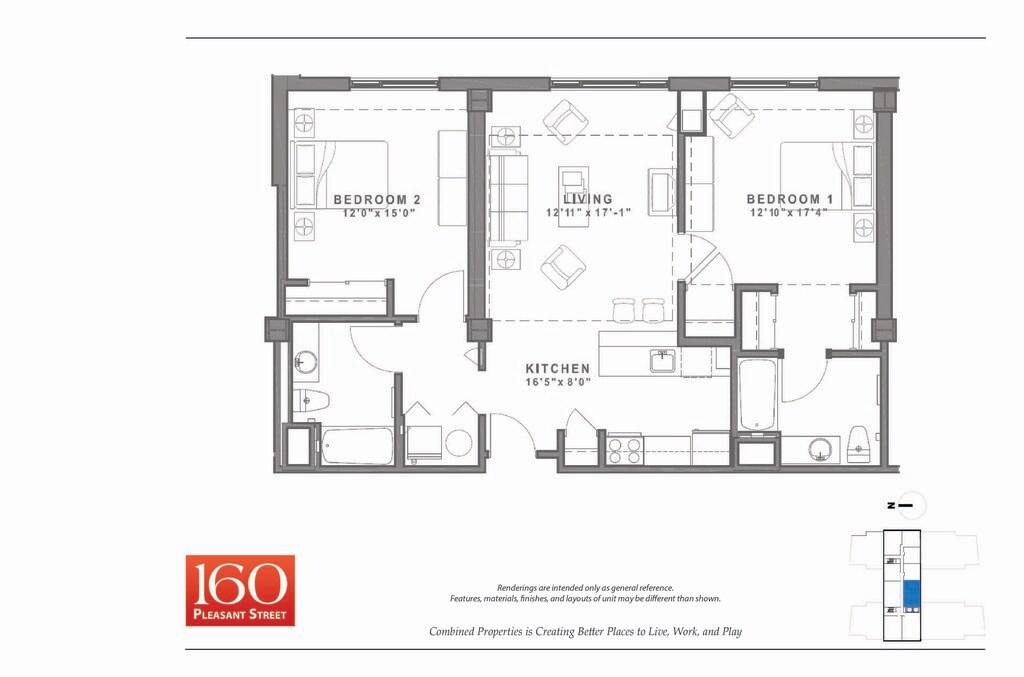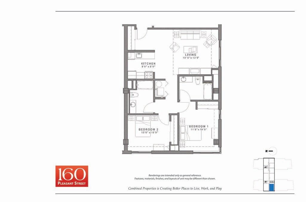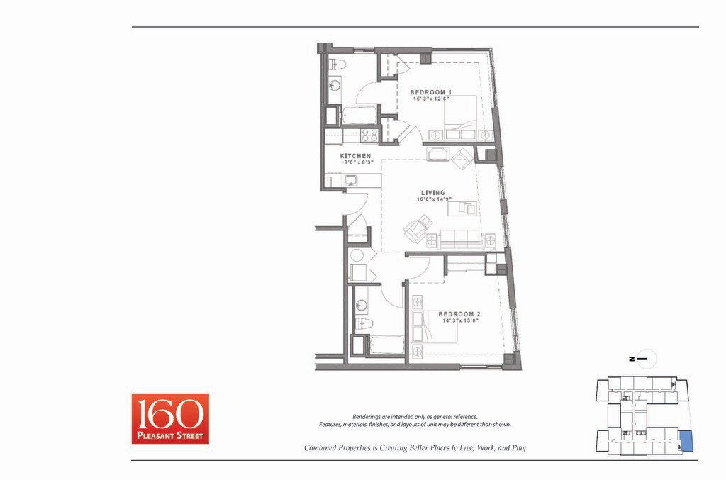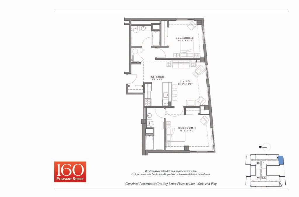 Studio to 2 Bedroom Apartments at 160 Pleasant Street Apartments currently range from $2,600 to $3,855