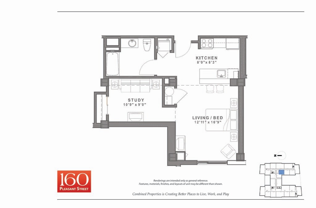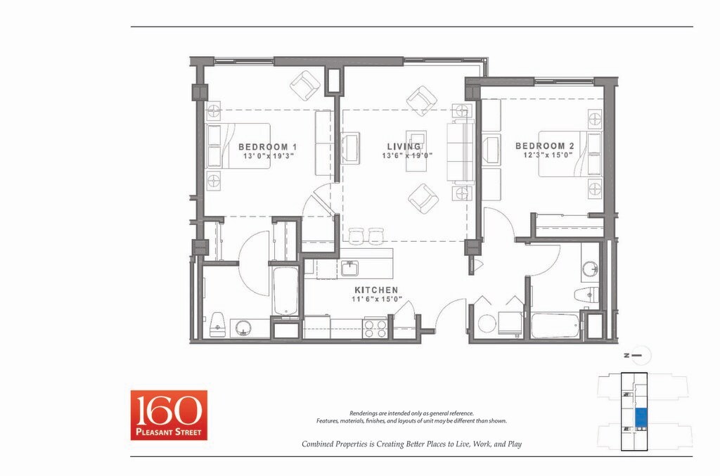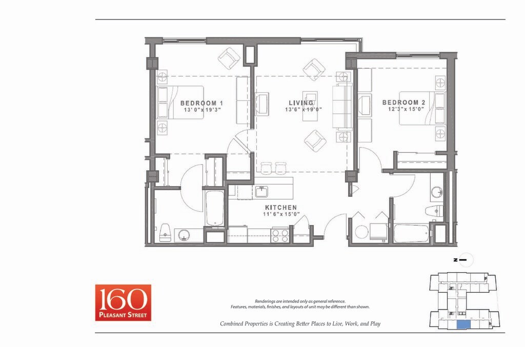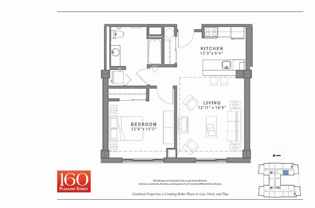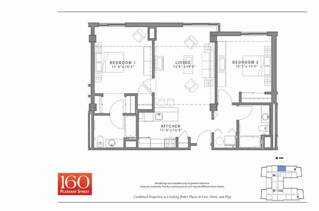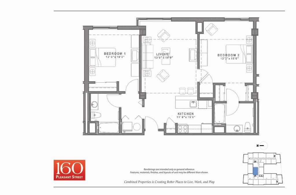 Studio to 2 Bedroom Apartments at 160 Pleasant Street Apartments currently range from $2,600 to $3,855
