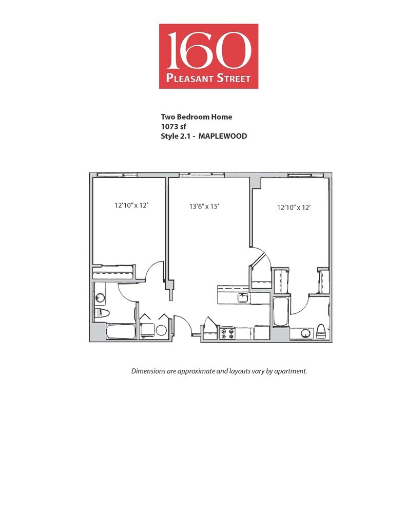 160 Pleasant Street Apartments offers Studio to 2 Bedroom apartments starting from $2,600 and having 504–1,108 sq ft. Here is the current pricing and availability: