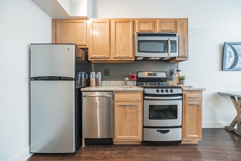 The apartments at 1600 Chestnut are modern/updated with great features like hardwood floors throughout, high ceilings, large windows, central heat/air, granite/stainless steel kitchens. Plus, free laundry along with a Wi-Fi /tv lounge on each floor, and a small fitness center on the 5th floor. Water is included; tenants pay their own electric. No front desk attendant.
