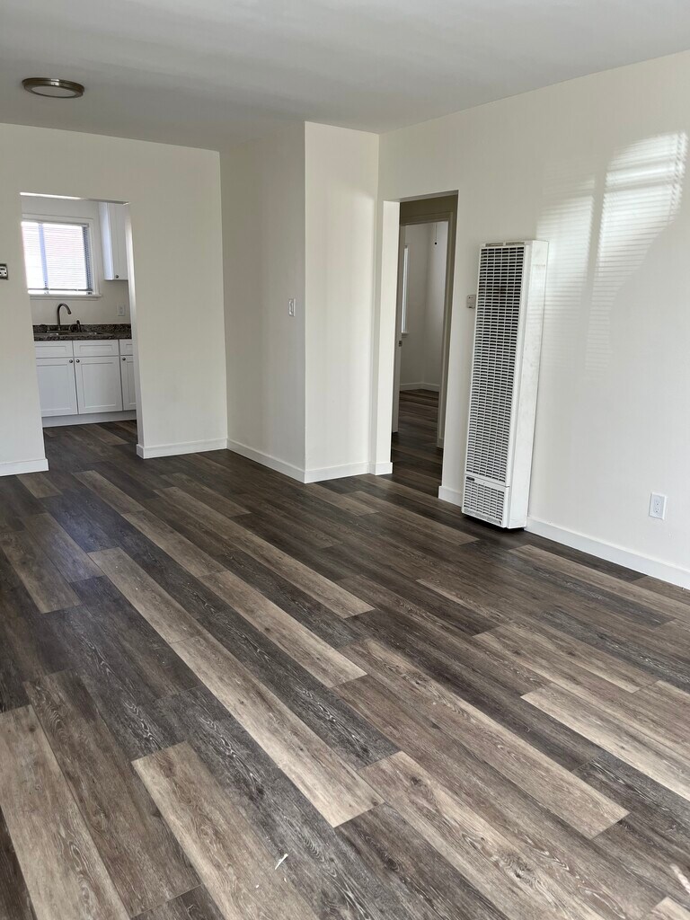 Newly remodeled 2 bedroom, 1 bath with garage. New kitchen cabinet and countertop. New shower, vanity and toilet. Parking for one compact car. Fourplex with long term tenants. Next to the new Gardena Community Center. Great neighborhood!