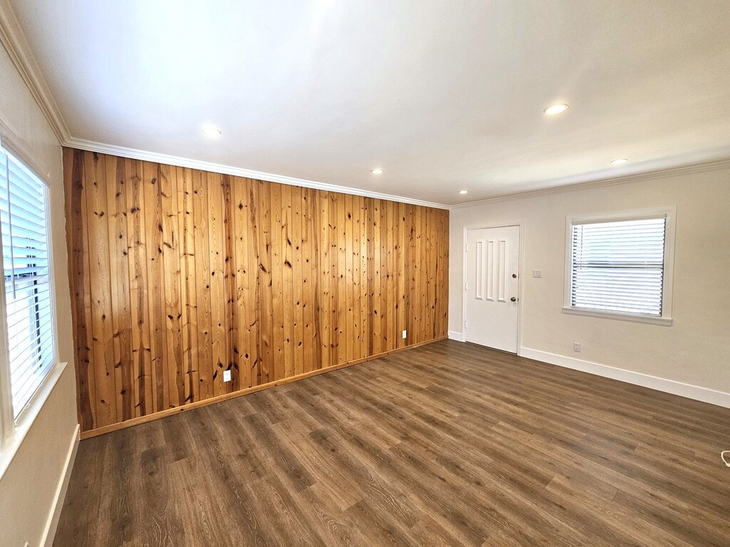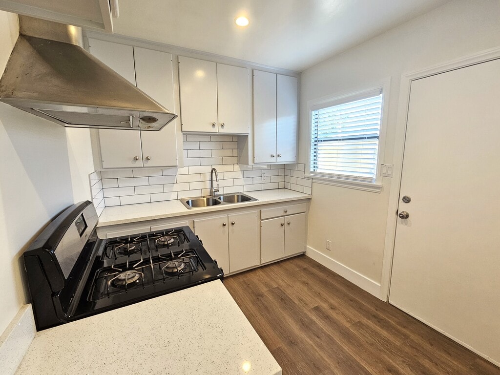 Conveniently located and Updated 1 Bedroom / 1 Bathroom unit in Burbank. Off street back duplex unit with welcoming porch entry. The well sized space is Move-In ready and available for immediate occupancy. The unit has a newly redone Bathroom, Updated Kitchen counter/ sink/ backsplash tile, Brand new flooring, Freshly painted interior, Recessed lighting, Open Living / Dining Room, Pantry Closet, Tankless water heater, Convenient side access door from Kitchen, Garage with laundry. Close to local shops, eateries, and other local amenities.