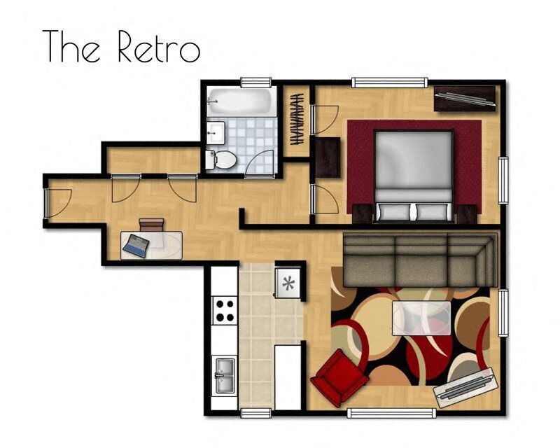 The Retro - Floorplan 1 2 Bedrooms