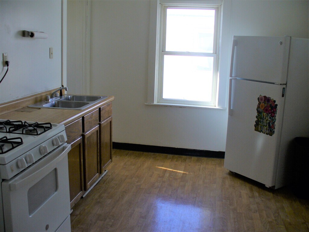 this upper apartment has newer windows/ newer furnace/it is clean/ there is a washer /dryer hookup in the basement/ there is off street parking in the rear of the building/ there is a large living room and dining room in the apartment