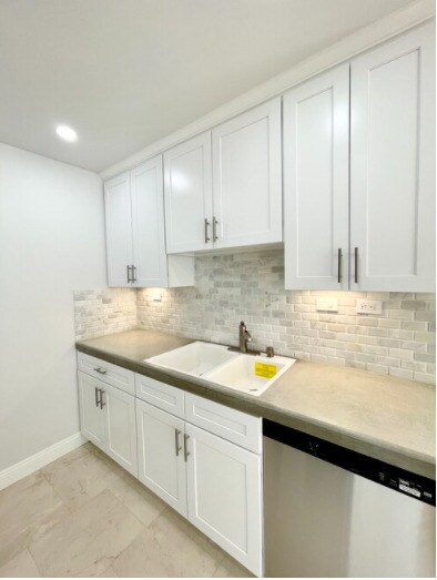 Top second floor two (2) bedroom, two (2) bath features brand new kitchen with newly installed with solid wood white shaker cabinets, stainless steel appliances, solid Concrete countertops, Grecian White marble backsplash, hardwood floors throughout living, & bedrooms. Brand new master shower with Grecian white marble tile, and flooring with rainfall feature. Recessed lighting!