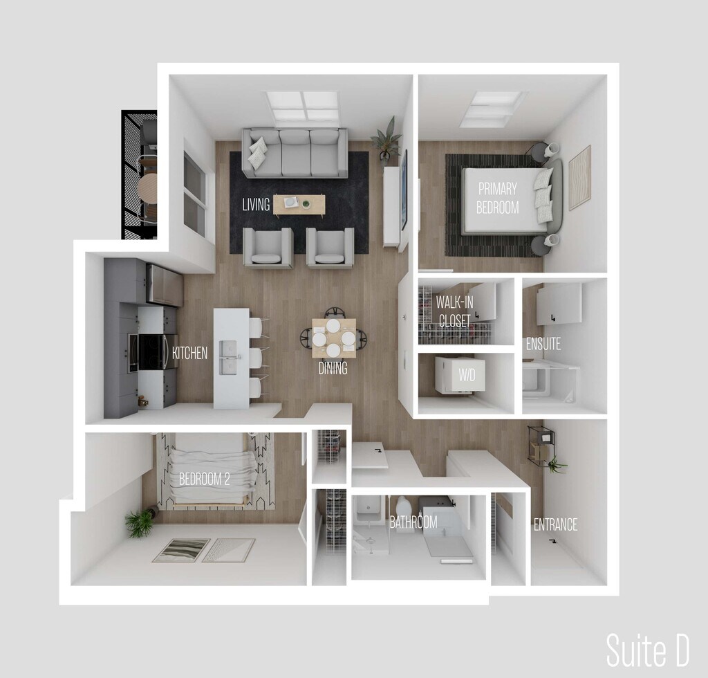 Suite D - Floorplan 6 Apartment Unit: 209Apartment Model: Suite D2 Bedroom, 2 Bath, 938 sq ftAvailable January 1, 2026Suite A