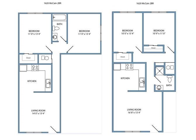 1 Bed 1 Bath - Floorplan 2 2 Bedrooms