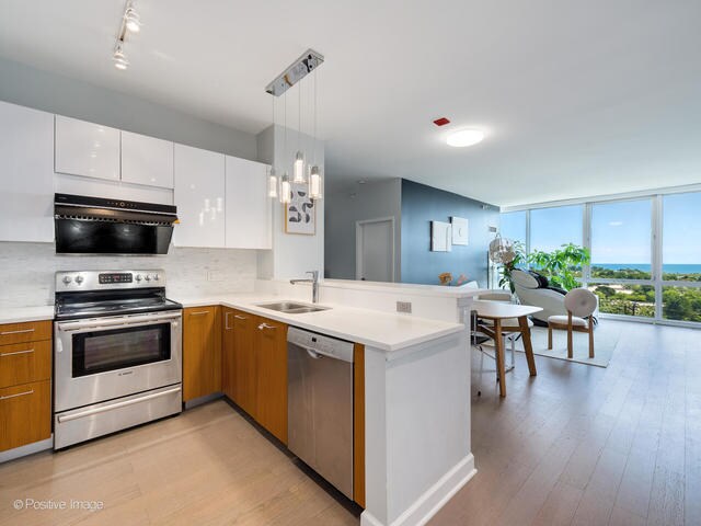 Stunning sunrise views! Enjoy breathtaking Lake views the moment you enter this highly upgraded 2BR+ den/2BR condo in Museum Park's Adler Place. East facing floor-to ceiling windows offer panoramic views of the Lake, Museum Campus, and Soldier Field from every room. Highlights include premium hardwood floors throughout, custom window treatments, and large balcony overlooking the Lake. Modern kitchen features two-toned glossy white and wood Snaidero cabinets, marble tile backsplash, Quartz countertops with breakfast bar for seating, and Bosch stainless-steel appliance package. Spacious primary suite offers two closets including a walk-in with custom organization, and double vanity with Quartz countertops. Separate den is perfect for work from home space or exercise area. 2nd bedroom, bathroom and in-unit laundry complete this fabulous home. Full amenity building including 24-hr door staff, pool with unbeatable Lake and City views, resident lounge, sundeck with grills, and exercise room. All of this in an ideal location with easy access to Museum Campus, the Lakefront path, restaurants, bars, and public transportation. listing courtesy of: Land Fairy Realty Corp.