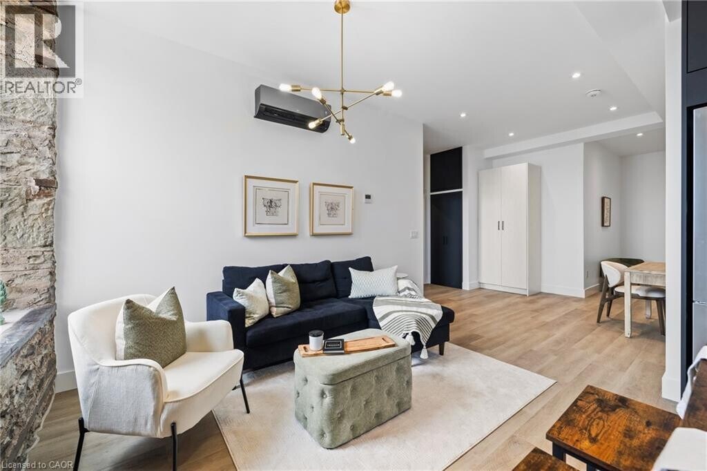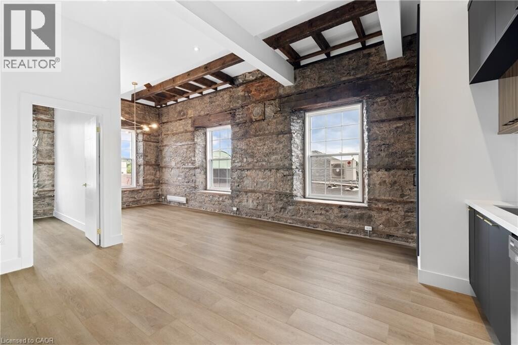 Discover a perfect blend of modern luxury and historic charm in this trendy one-bedroom loft located in the heart of downtown Milton. A beautifully designed common hallway welcomes you with warmth and sophistication,leading to a striking Tiffany blue door that frames the entrance to this inviting unit. Inside,timeless character meets contemporary design with hardwood floors,exposed beams,and original stonework that highlight the building's rich history. The modern kitchen features stainless steel appliances,a sleek porcelain backsplash,soft-touch cabinetry,and oversized window sills that fill the space with natural light and create an airy,open feel. Enjoy the best of Milton right at your doorstep-steps from La Toscana,Pasqualino Italian Restaurant,and the Milton Farmer's Market,with convenient access to major highways,top-rated schools,and scenic parks. Experience boutique loft living at its finest-where heritage and modern comfort come together beautifully. Short term corporate rentals will be considered. (id:52069) ID#: 1750685