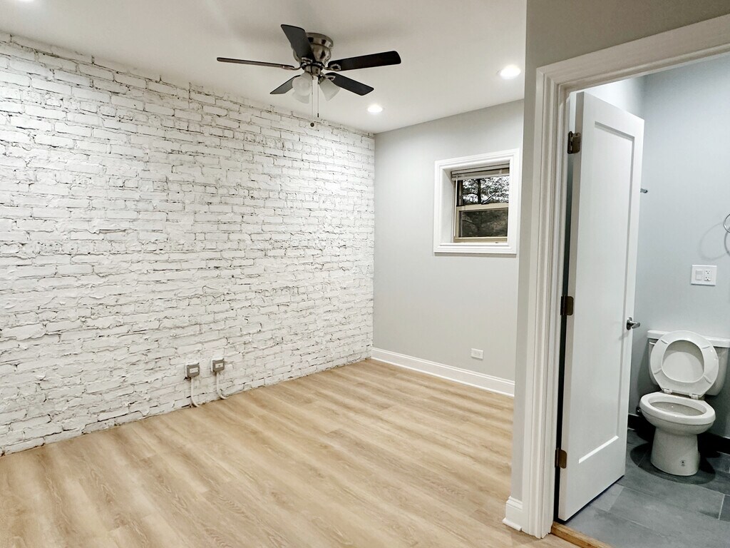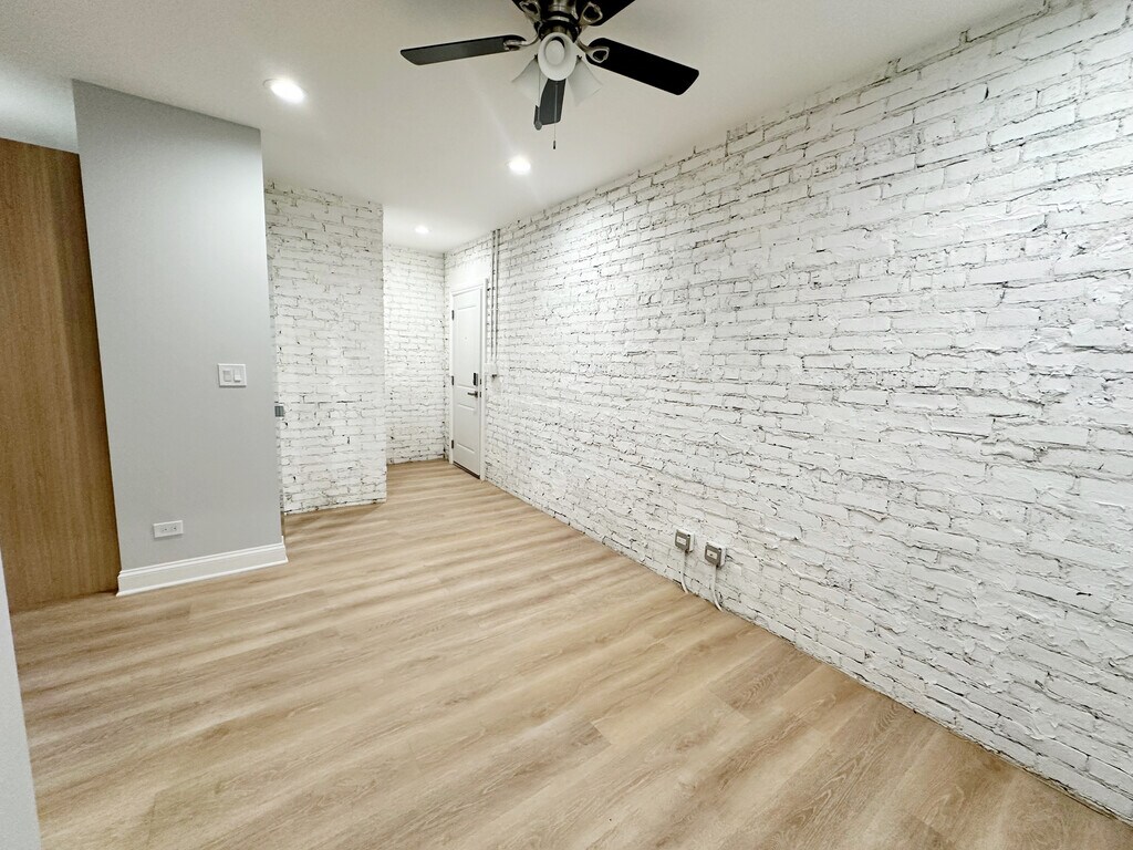 Apartment Features: —Two Toned Kitchen Cabinets with Undercab Lighting —Quartz Countertops with Deep Undermount Sink —Stainless Steel Appliances including Dishwasher —Exposed Brick Feature Wall —In Unit Laundry —Designer Plank Flooring —Ceiling Fans with LED Lighting —Heat, Cooking Gas, Water Included —Pets Welcome! (No pet rent)