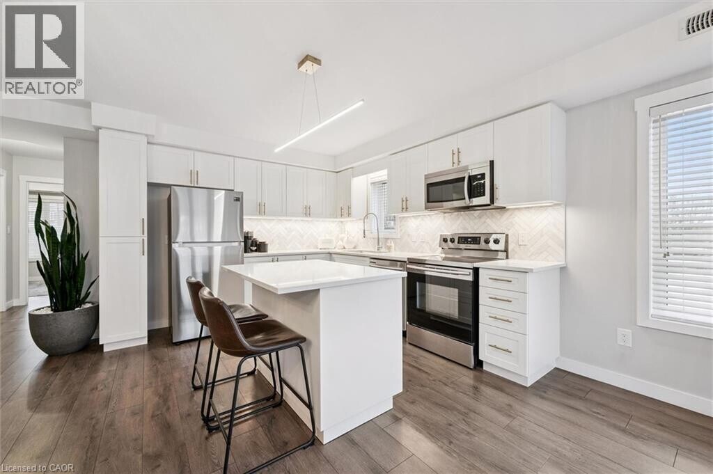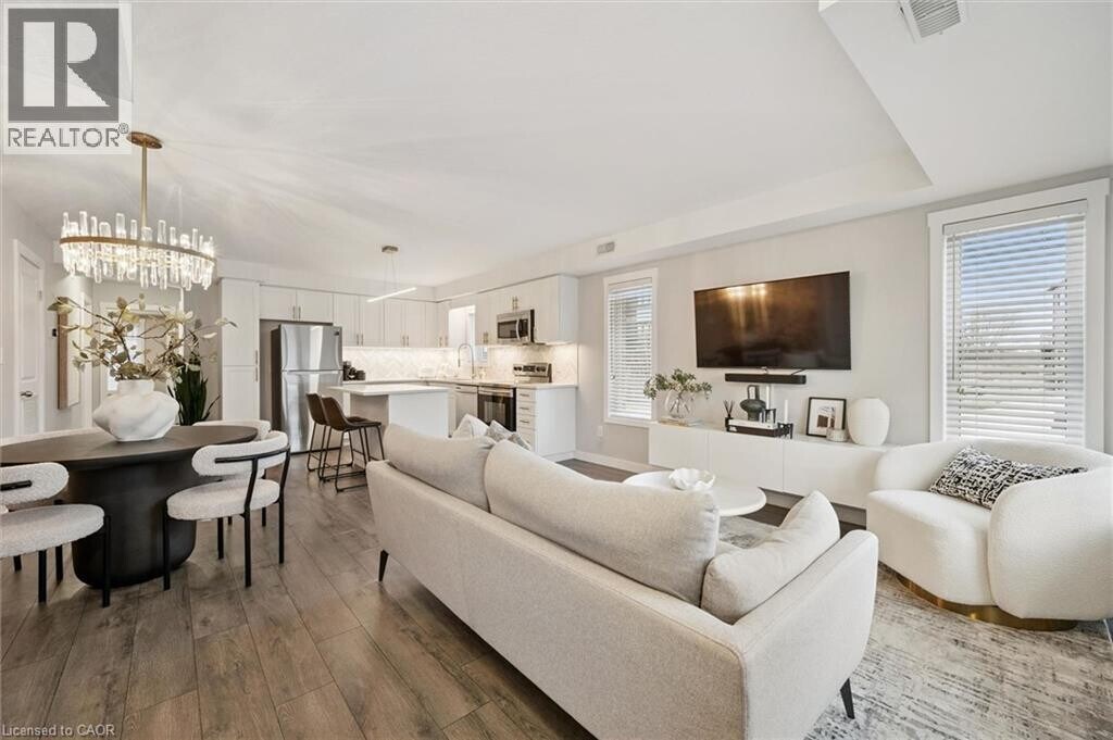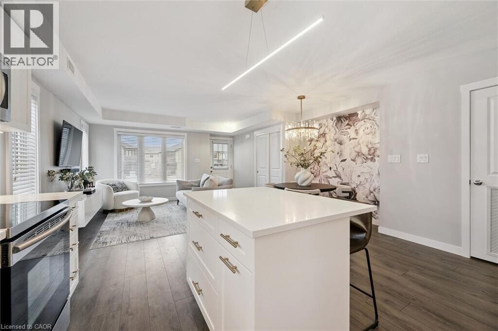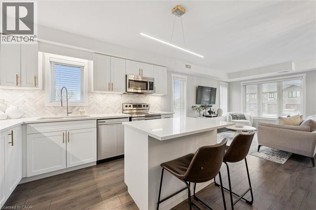 Welcome to this beautifully upgraded 2-bedroom,2-bathroom corner unit townhouse in the highly sought after Huron Heights community. This single-level home offers a rare blend of designer finishes,functional layout,and everyday convenience. Thoughtfully curated by MC Design Styles,the interior showcases a cohesive,elevated aesthetic throughout. The kitchen features a timeless herringbone Carrera marble backsplash,custom under-cabinet lighting,upgraded fixtures,and brass hardware. The open-concept living space is anchored by a custom built-in media unit and textured accent wall,while Lutron dimmers and a fully integrated Nest system provide seamless smart home living. Enjoy upgraded designer lighting throughout,including a statement LED island feature and modern dining chandelier,complemented by premium custom window treatments that add both privacy and a polished,high-end finish. The spacious primary bedroom offers a spa-inspired ensuite,while the second bedroom and full bath provide flexibility for guests or a home office. As a bright corner unit,the home is filled with natural light and designed for comfortable living. Ideally located close to highway access,Longo’s,RBJ Schlegel Park,walking trails,schools,and more. A standout lease opportunity in a vibrant,family-friendly neighbourhood. (id:63800) ID#: 2146852