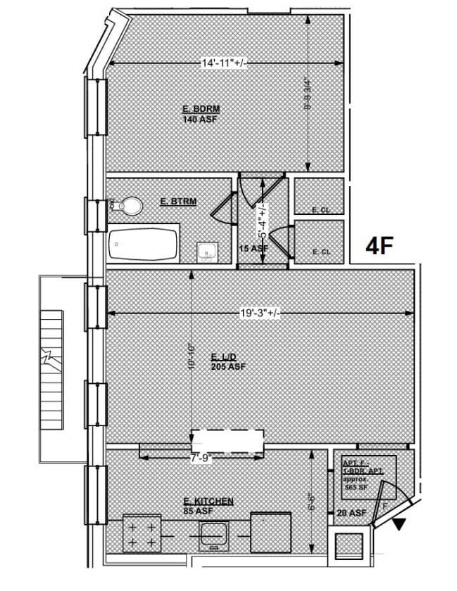 Unit: 4F - Floorplan 7 Apartment Unit: 5NApartment Model: 1 Bedroom$2,3051 Bedroom, 1 Bath, 580 sq ftAvailable NowFloorplansPhotos![]()
