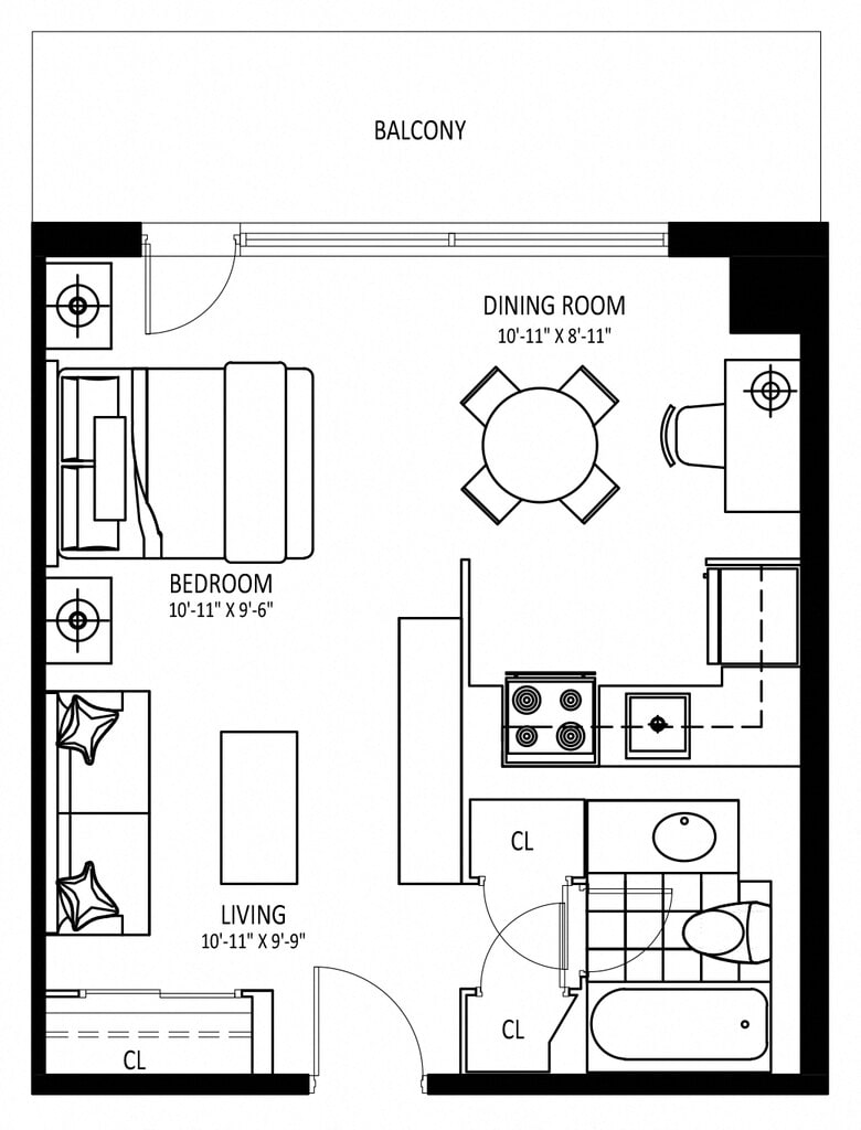 Apartment Model: 165 Ontario - Plan E$1,515Studio, 1 Bath, 470 sq ftAvailable Now![]()