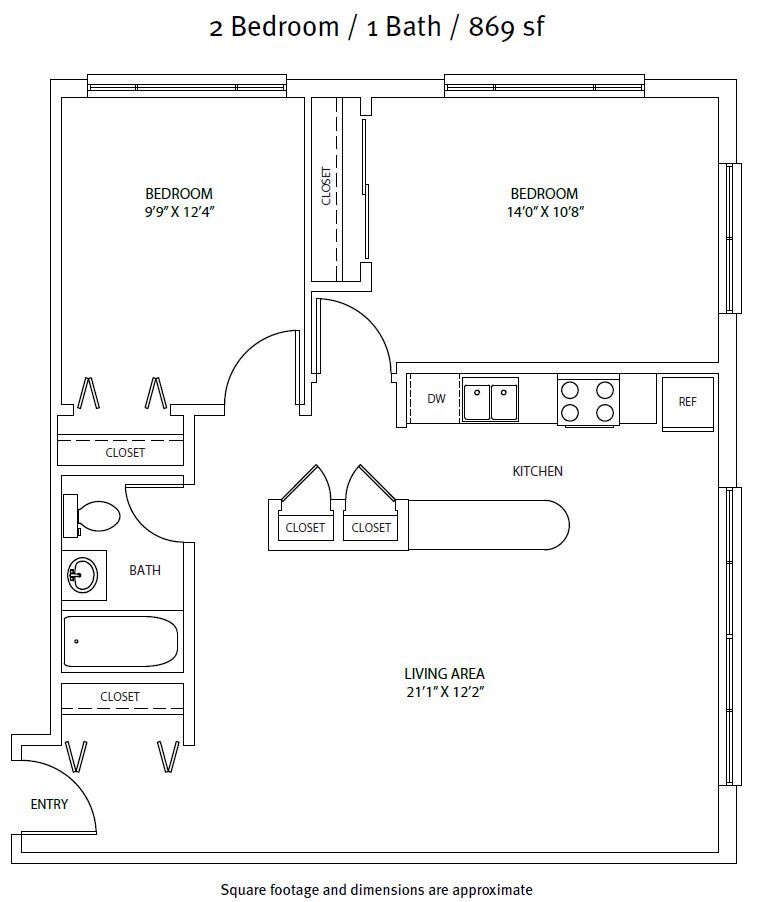 1650 S Albion - 1 Bed 1 Bath - Floorplan 1 2 Bedrooms