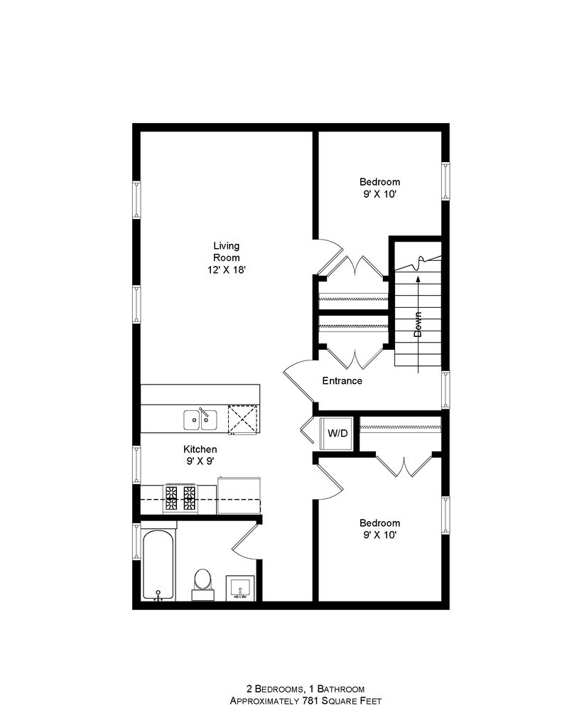 2 Beds, 1 Bath, 781 sq ftLargest 2 BedroomThis is the largest 2 Bedroom at this PropertyModel Gallery