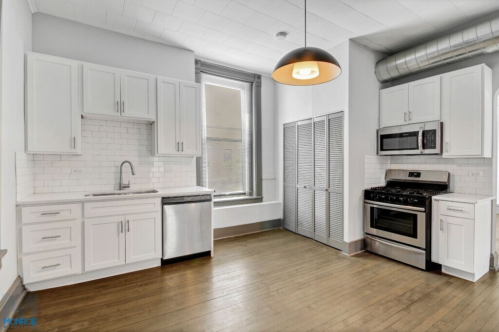 This an incredibly unique building that offers 2 bedroom apartments with high ceilings in a great location.This incredible building has 6 units of which 3 were previously finished by the old architect owner and features high ceilings, Coffee Colored cabinets and Soap Stone Countertops. The other three units we are completing with Quartz countertops, subway tile, stainless steel appliances, and much more. The Bathrooms are very tastefully done with white subway tiles and Quartz countertops. This building is a few blocks to 18th street in downtown Pilsen where you can enjoy a live show at Thalia Hall or walk to several restaurants and bars. This building is also a short walk to the 18th Street Pink line. You will be a few blocks away from Harrison Park and there is a Pizza Shop on the ground level in the commercial space for your lazy nights.