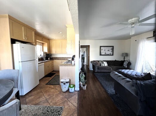 This spacious and bright upstairs apartment offers an ideal blend of comfort and convenience in a prime Huntington Beach location. The primary bedroom features three generous closets and a private balcony, while the large living room boasts laminate flooring and a second balcony, perfect for enjoying the coastal breeze. Ceiling fans throughout provide added comfort, and the separate dining area flows into a fully upgraded kitchen equipped with a stove and dishwasher. Additional amenities include a community laundry room, a one-car garage for storage, and two dedicated parking spaces. Just one block from Huntington Harbour Mall—home to Trader Joe’s, restaurants, banks, and shops—and only 2.5 miles from the beach, this apartment offers an exceptional coastal lifestyle.