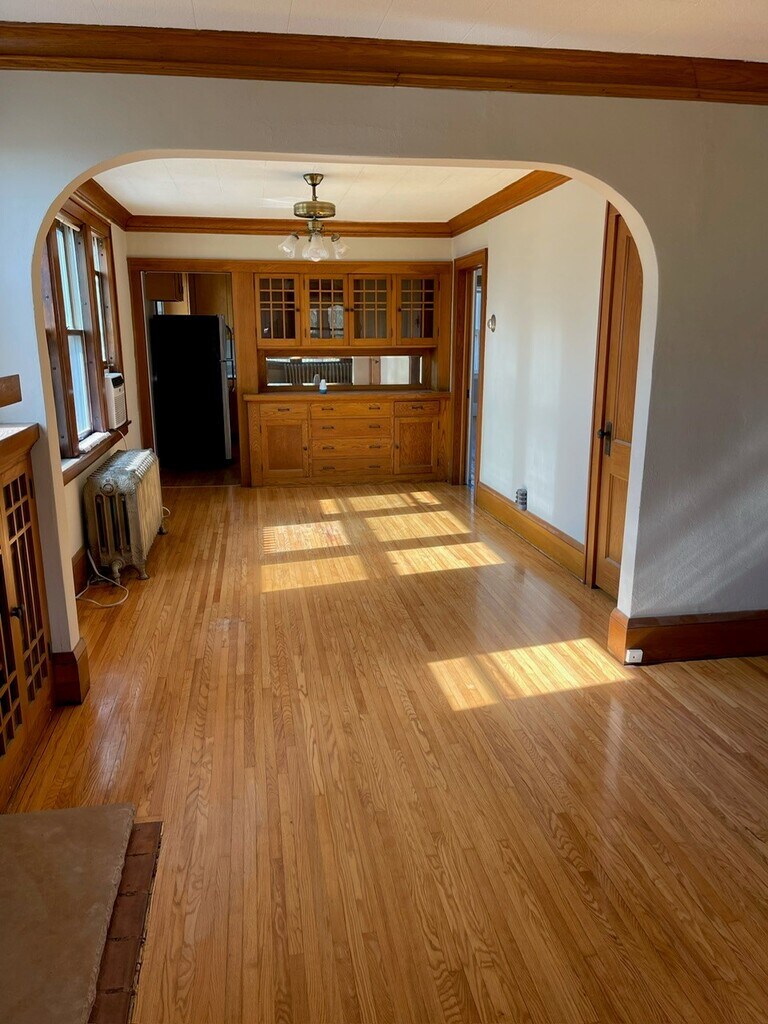 Awesome Duplex Apartments located in a quiet, safe family friendly neighborhood. The units are dog/cat friendly and has a fenced in backyard. Single car parking is available. Both units have a front porch area, oak hardwood flooring and wood trims. (Fireplaces are not active but are beautiful none-the-less.) The unit gets a ton of natural light. Water, sewer, refuse and snow removal are included in the rent price. Individual unit Washers and driers are available (not coin operated) in the basement. The basement also has a storage room (11'*9') for each unit.