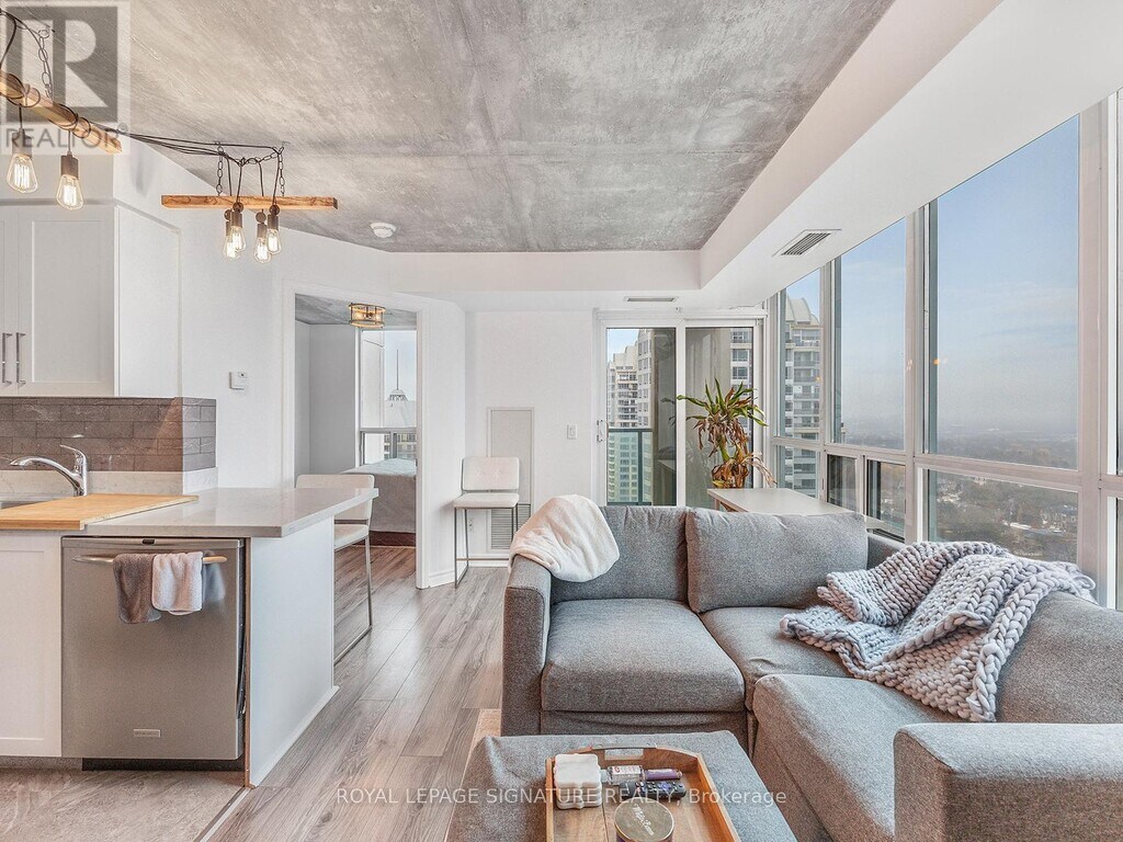 Luxury Bayview Village Condo. This unique,upgraded unit features exposed concrete ceilings,upgraded laminate flooring,granite countertops with a breakfast bar,stainless steel appliances,new light fixtures,large windows,and a walk-out balcony with panoramic city views. Abundant natural light fills this spacious one-bedroom throughout the day. Enjoy the convenience of walking to parks,shops,transit,and everything downtown has to offer. Amenities include a 24-hourconcierge,gym,and more. (id:52069) ID#: 2060939