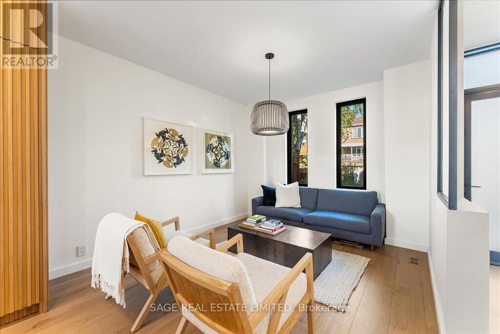 Architecturally reimagined & meticulously finished,17 Gordon St,is a masterclass in contemporary design & Scandinavian-inspired living. Nestled on one of Little Portugal's most charming streets & one of the cities most walkable west-end neighbourhoods,every detail of this light-filled home has been carefully considered. Clean lines,organic materials,& a thoughtful spatial flow come together to create a retreat that feels elevated,calming,& effortlessly cool! The main flr is a celebration of light,space,& intentional composition,where minimalist design meets warmth. A sculptural chefs kitchen blends matte black millwork,custom white oak paneling & striking stone surfaces. Integrated appliances,gas cooking,& an oversized island make the space as practical as it is beautiful. Transitioning effortlessly into a bright dining area with built-in seating & framed by oversized windows,the sliding glass drs dissolve the boundary between indoors and out,leading to a private garden. Layered native plantings & a wood deck create a natural extension of the living space. Just beyond,a detached garage is currently outfitted as a home gym expanding the homes function and floor plan further. The primary suite is a serene sanctuary w/ ample storage & paired w/ a versatile glass-walled bonus rm,ideal as a home office,nursery,or creative studio. A skylit hallway,bright 2nd bedroom,and beautifully finished bathroom complete the level; with wide-plank white oak floors and minimalist millwork tying the spaces together with understated elegance.The lower level offers a spacious guest suite w/ a built-in coffee/bar nook,a media lounge,3-piece bathroom and add. storage. Beyond the front door,the home extends into the vibrant fabric of Little Portugal. Enjoy morning espresso from Sam James,dinner at Lula Lounge or Flor Mexicana,and weekend strolls through McCormick Park. Queen W,Ossington & Dundas W best restaurants,cafés,boutiques are all moments away. (id:52069) ID#: 2086019