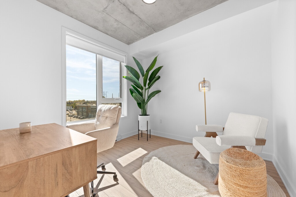 17 Hyman – Modern Apartments in Dollard-des-Ormeaux Discover 17 Hyman, an eco-friendly residential project in Dollard-des-Ormeaux offering a modern, bright, and comfortable living environment. This LEED-certified complex of 120 apartments provides an ideal setting for those seeking a balance between urban convenience and peaceful living. The building enjoys a prime location near the REM, shops, restaurants, schools, parks, and essential services, making daily life easy and convenient. Common amenities include a fully equipped gym, rooftop terrace, relaxation and coworking lounges, and underground parking with electric vehicle charging stations. 3?½, 4?½, and 5?½ units are currently available, featuring modern layouts with private balconies in a secure building with on-site concierge and camera surveillance. 17 Hyman is perfect for anyone looking to live in a thriving, up-and-coming neighborhood in Dollard-des-Ormeaux.
