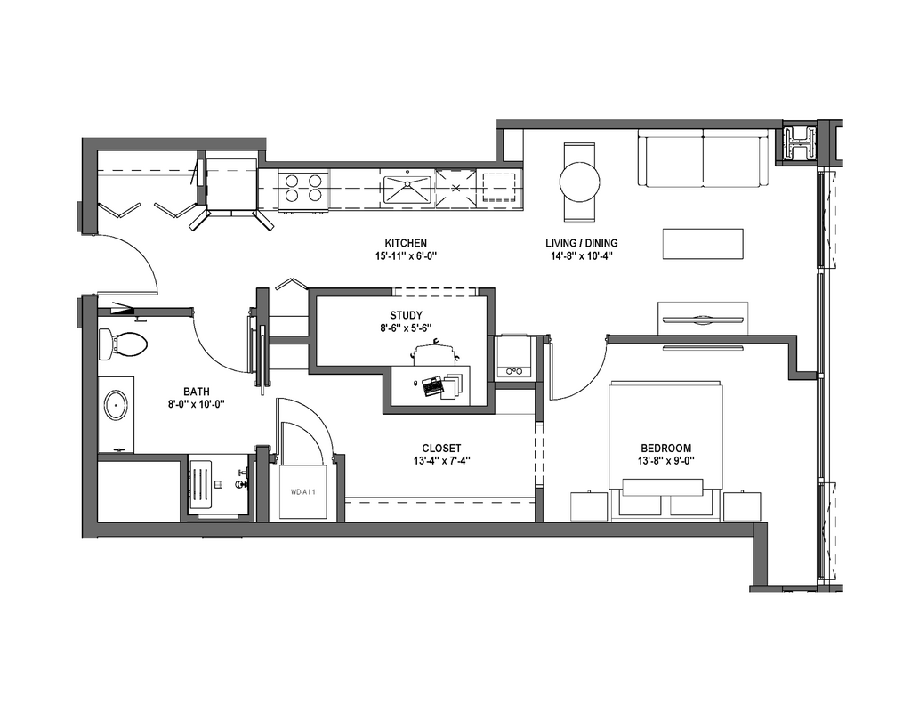 1 Bed, 1 Bath, 676 sq ftAvailable NowModel Gallery