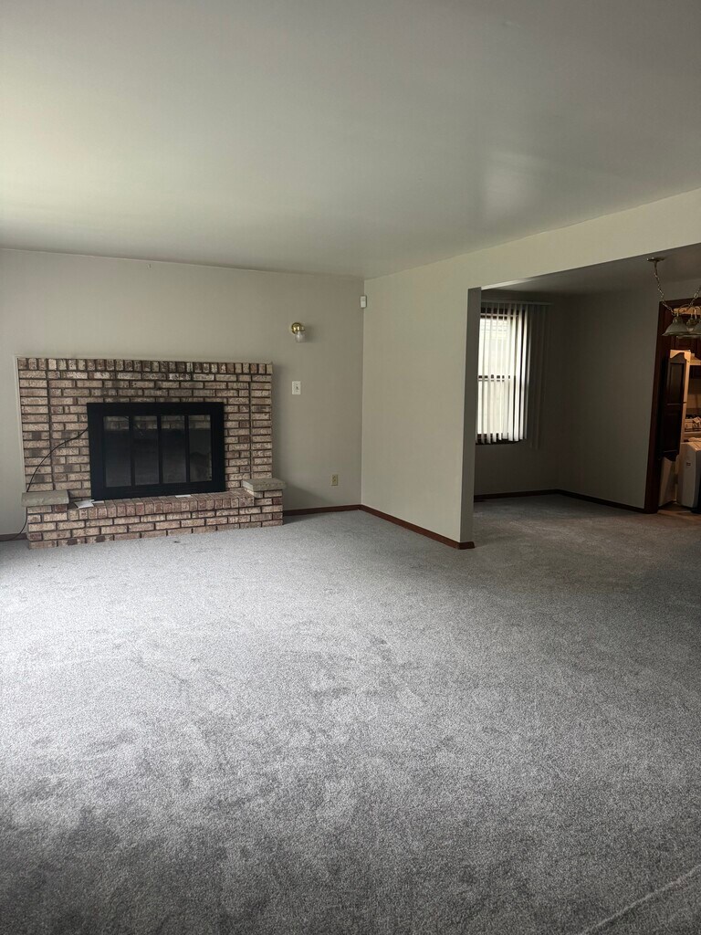 This inviting three-bedroom, one-and-a-half bath home offers comfort and convenience with recent updates. Freshly painted throughout, it features brand-new flooring and carpeting. This spacious living room welcomes you with a cozy brick fireplace thats perfect for relaxing and entertaining. The kitchen comes equipped with a new refrigerator and stove, along with an updated furnace for a peace of mind. Vents cleaned by Indoor Professionals. Additional highlights include your own private backyard, garage, driveway, and basement- providing plenty of space and storage. This home is truly move-in ready with all modern updates you’re looking for. No Pets. Serious inquiries only.