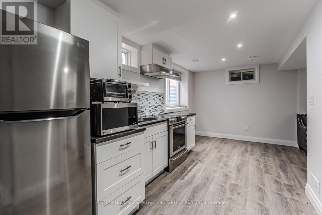 WELL-MAINTAINED BACHELOR SUITE WITH CONTEMPORARY FINISHES! Discover this all-inclusive,bright,and well-maintained lower-level bachelor-style suite with stylish finishes throughout. The sleek kitchen features stainless steel appliances,including a fridge,stove,microwave,and toaster,paired with timeless white shaker cabinetry,a tile backsplash,and a dual sink. A contemporary 3-piece bathroom features a glass shower and bold black fixtures,while an in-suite laundry area with a stacked washer and dryer,along with an extra closet,provides everyday convenience. Easy-care flooring and recessed lighting complete the space,with one parking spot,and all utilities covered except for the internet. Secure this well-maintained #HomeToStay and enjoy modern living made easy. (id:52069) ID#: 1635513