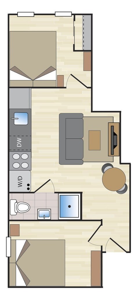 Apartment Model: 2 Bedroom / 1 Bathroom2 Bedroom, 1 Bath, 550 sq ftUnavailable![]()