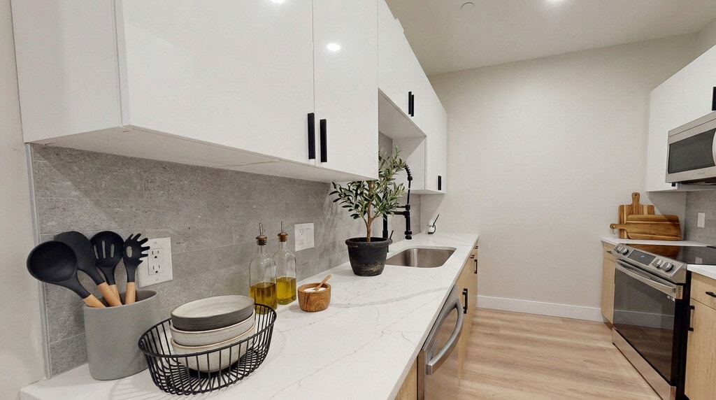 A four-story, 25-unit community with stunning city skyline views. Studio, 1 and 2-bedroom open layouts with large windows that usher in tons of natural light, fine finishes and appliances, and convenient amenities like a complimentary fitness center. Each apartment uses a palette of warm neutrals; a stylish base that easily aligns with your personal style and taste. These maximized floor plans offer connected living/dining spaces, ample kitchen storage, spacious closets, and en-suite bathrooms. Features include quartz countertops, Stainless Steel Appliance packages, Central A/C, and W/D in Unit. Right outside our doors are coffee shops, restaurants, grocery stores and more! Close by is Pope John Paul II Park, Marina Bay and the picturesque Neponset River.