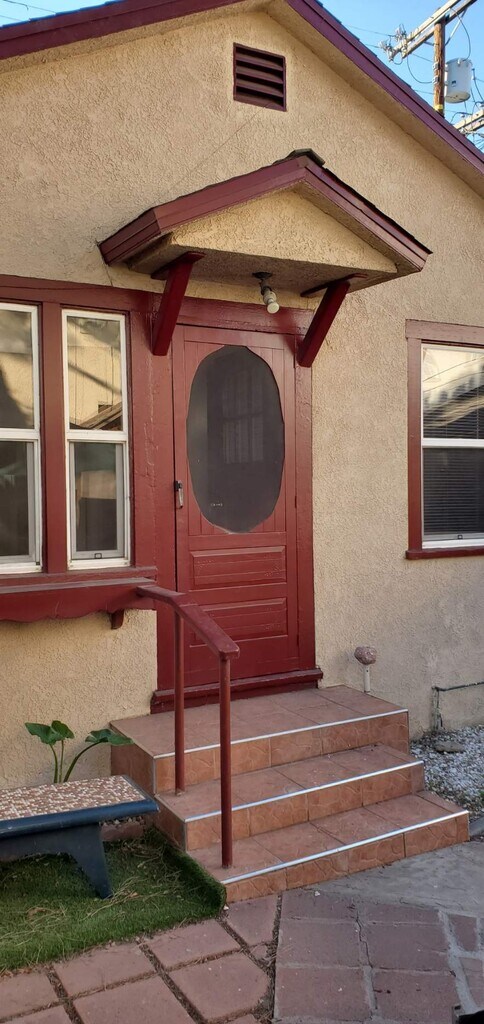 Discover this nicely maintained, unfurnished 1920s rear house in a quiet, desirable Mid-Wilshire adjacent neighborhood. The stucco cottage has been lovingly maintained by the homeowner for decades, who is very handy in maintaining it. Conveniently located near the 10 and 405 freeways, metro bus/train lines, and within walking distance or a short drive to restaurants, shopping, museums, and parks. This 1-bedroom, 1-bathroom cottage offers vintage charm in laminate wood floors, stone tile flooring in the kitchen and bathroom, ceiling fans, a wall heater, and a bedroom window air conditioning unit. Bedroom is large enough to accommodate a queen sized bed. Features include vintage glass doorknobs, charming light fixtures, and ample built-in storage. The kitchen includes a gas stove/oven and refrigerator (tenant replaces when needed). A small vintage dinette set is available if desired. Private side entrance, locked gate, doorbell, and one FREE parking space. Shared yard space. Water included; tenant pays other utilities. Maximum 2 occupants, nonsmokers only, small/medium dog considered. No pet rent charged. Property owner lives in front house. First month's rent plus equal security deposit due at lease signing. One-year lease, then month-to-month. Credit check and income verification required. Walk through video available upon request. Listing is for prospective tenants ONLY. Absolutely NO inquiries by other entities are welcome. Please contact us via messenging, email link, or by phone to schedule a visit or if you have any questions.