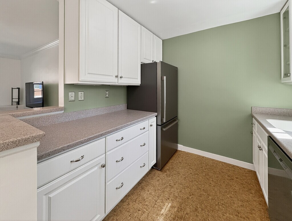A two bedroom 1.5 bathroom apartment is available now. Furniture in the living room/dining room is optionally available. **Brand new kitchen appliances have been installed and painting is underway. The close up photos of the kitchen are with the new appliances and paint color. The other photo will be replaced once painting of the living room is complete. The condo is conveniently located off of GW Parkway, and is walking distance to the Potomac Yard Metro station on BL/YL line, multiple bus routes, gyms, biking/walking trails, shops, grocery stores, Old Town, etc. The property has a gym, pool, tennis court, and plenty of parking. There is a washer and dryer in unit. Two parking passes are included. Utilities (electric and Wi-Fi) are billed separately.