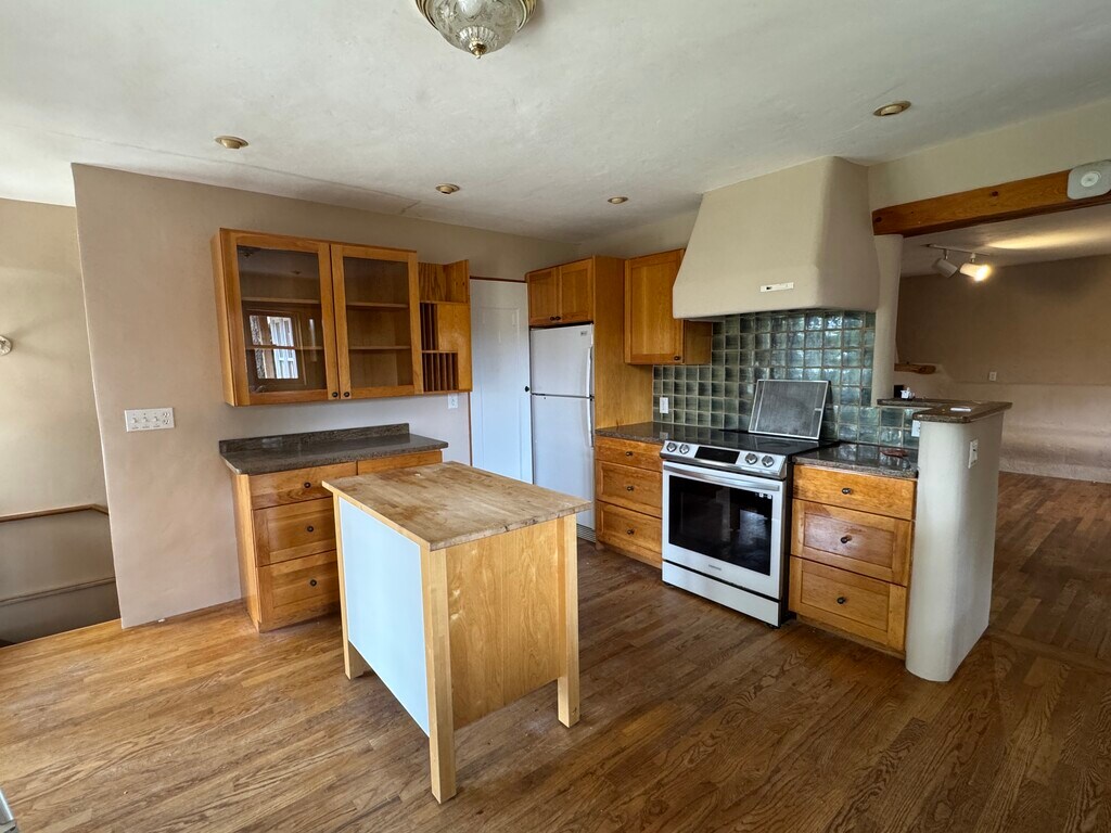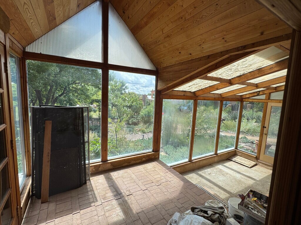This lovely 3BR/3BA home is located in a quiet co-housing community within walking distance of the Solana Center. It is approx. 2500 square feet with a ground floor and finished basement, has two fireplaces, plentiful natural light and hardwood floors on the ground floor. It is primarily finished with adobe and stucco inside and stucco interior has recently been painted. The ground floor consists of the kitchen, living room, an alcove off the living room, a master bedroom with an adjacent room (with Tonal exercise equipment) and en suite bathroom, as well as a second bedroom and a bathroom. The finished basement contains the third bedroom, along with an office or library space, a third bathroom and a generous, well-lit main room lined with storage on both sides. You will also find the HE washer and dryer down here. The kitchen has a newer Samsung induction range with built-in air fryer, a new Bosch dishwasher, and a pantry. Utilities are included, as is high speed internet. The house is part of a beautiful property with many fruit trees (apples, apricots, cherries), beautiful flowers, a community plaza (placita) and roofed area with a fountain, and more. Community opportunities include working in the shared garden or joining the independent goat and chicken co-ops that use the barn. There should be new baby goats in the spring. Birds love the place — most years we have a hawk family nesting in one of our big trees, and you can deduct up to $50 from your rent each month, with receipts, if you choose to feed the birds. It’s a very rural feeling that’s hard to find in the city! The community members have monthly potluck brunches and other gatherings, share resources as desired, and generally have a desire to live lightly on the earth. You’re definitely encouraged to participate in the community and to (gently) enjoy the property. There’s minimal chemical input on the land, and no toxic chemicals can be used in this rental. There are community compost bins that you’re encouraged to use, and you can also feed the goats when you have fruits or non-cruciferous vegetables they’ll like. This property is located along the Santa Fe River trail just two miles from the Santa Fe Plaza, and an easy commute for those working in Los Alamos. A $40 fee will be assessed at time of application for a required credit check.