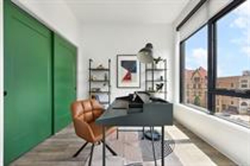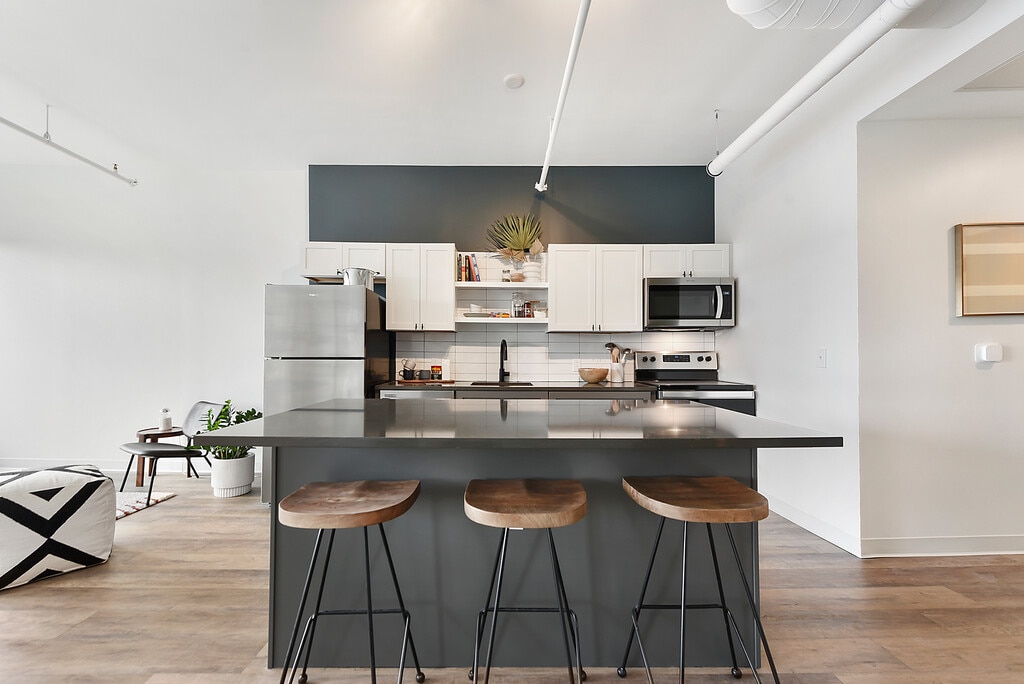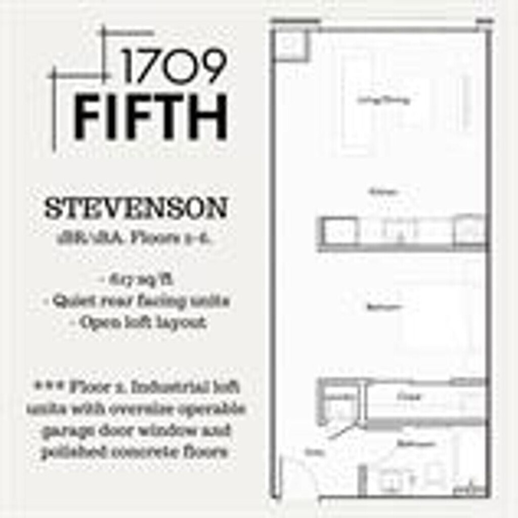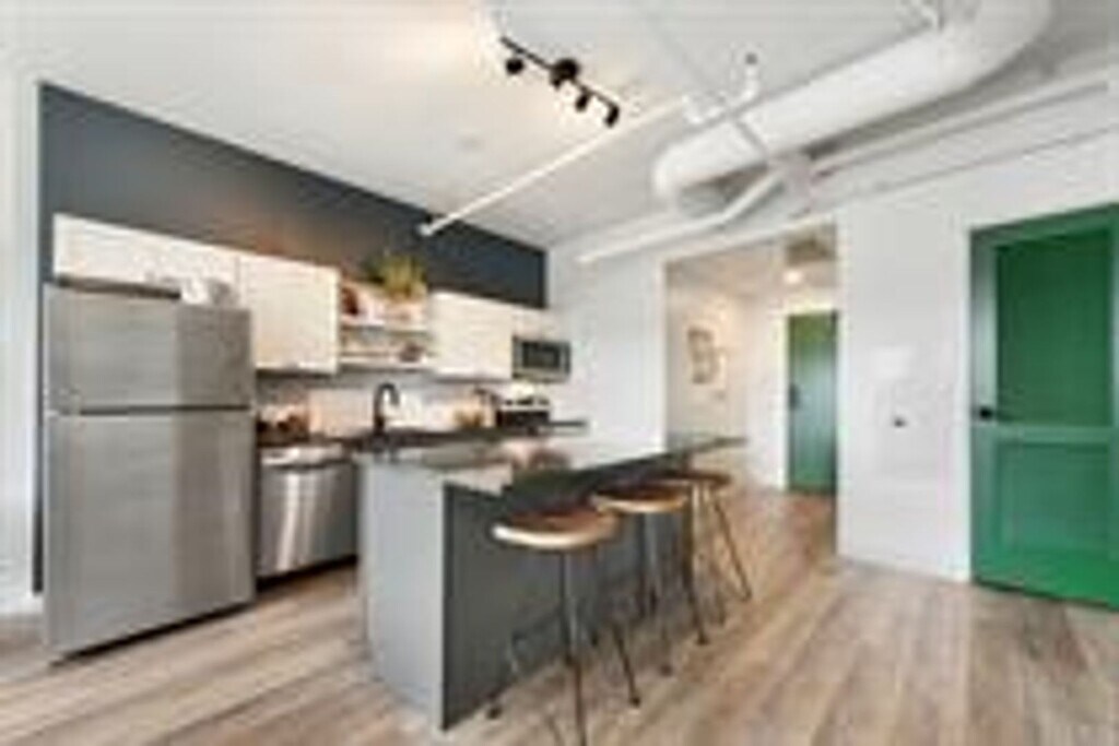 - Unit Description- Stevenson floor plan. Third floor 1BR/1BA quiet, north facing unit. One loft concept with oversized bedroom closet, quartz countertop kitchen, CB2 lighting & accessories, stacked laundry center and more. Additional features: GE stainless steel appliance suite, disposal, stacked GE laundry in-unit, marble counter bath vanity, tiled bathroom, smart Amazon thermostat, smart entry access, custom window coverings and more. Amenities Air conditioner, Climate control, Controlled access, Dishwasher, Disposal, Dryer, Heat, Microwave, Pet friendly, Refrigerator, Stove and oven, Tile floors, Vinyl floors, Washer, Window coverings - Model Rent and Fees- Model Price Range- $1,450 - $1,500