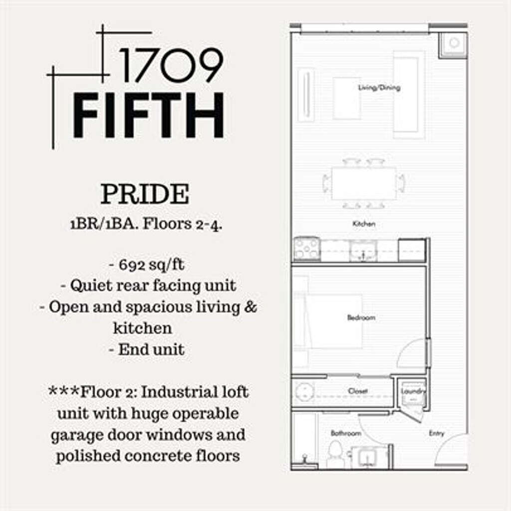 1709 FIFTH AVE offers Studio to 2 Bedroom apartments starting from $1,450 and having 615–1,010 sq ft. Here is the current pricing and availability: