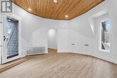 An exceptionally rare opportunity to lease a beautifully renovated penthouse suite in a character multiplex on one of Toronto's most coveted streets - Parkside Drive,sitting directly across from the sweeping green expanse of High Park. Featuring 1100 sq ft of living space across three bedrooms,this top-floor retreat offers the kind of space,character,and views that simply don't exist at this price point in Toronto.The showstopper is the breathtaking curved sitting room - a full rotunda with soaring vaulted wood-plank ceiling,wraparound windows framing the treetops of High Park,and a private terrace overlooking 400 acres of green space. Morning coffee above the park. Summer evenings on the BBQ deck. This is the lifestyle people move to Parkside Drive for.The renovated kitchen features full-height shaker cabinetry,stainless steel appliances including dishwasher,subway tile backsplash,and charming sloped ceilings that give the space real character. The spa-like bathroom offers a glass-enclosed shower,vessel sink with matte black fixtures,and a skylight that floods the room with natural light.Three well-proportioned bedrooms,wide-plank flooring,and pot lights throughout complete this truly special suite. Long-term street parking available from the City for just $23/month. Steps to Roncesvalles Village,TTC,and Sunnyside Beach. (id:63800) ID#: 1946574