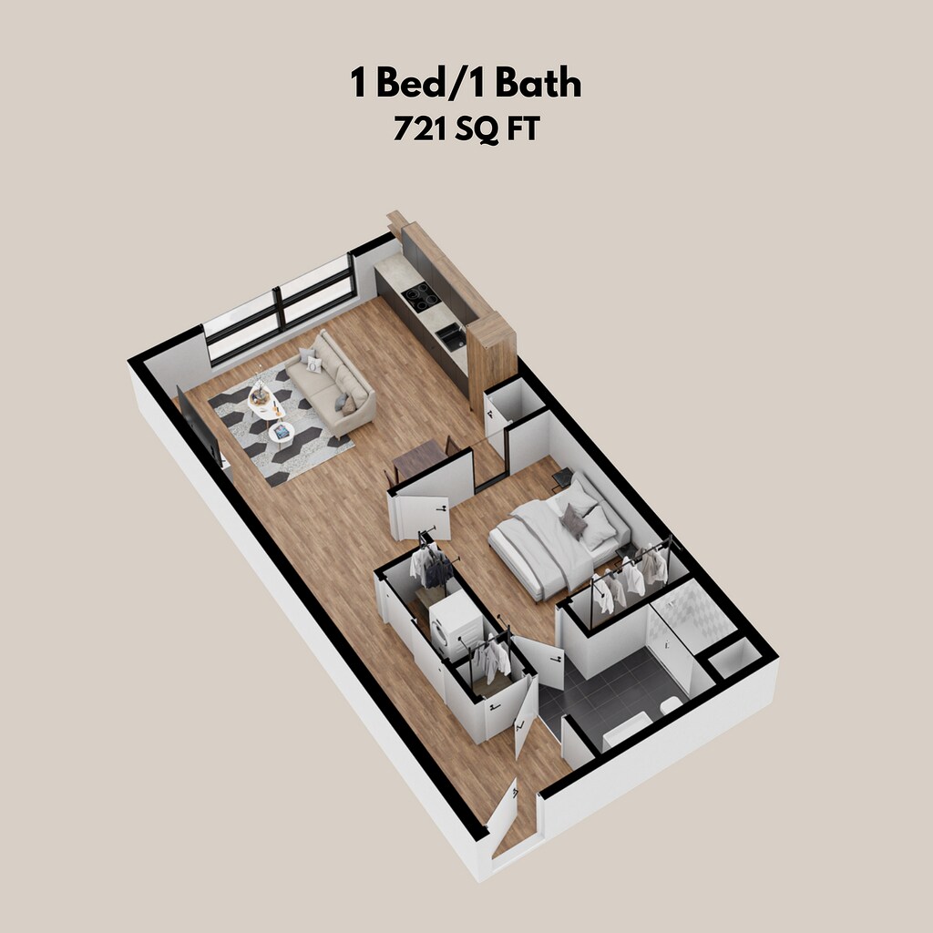 1 Bed, 1 Bath, 721 sq ftModel Gallery