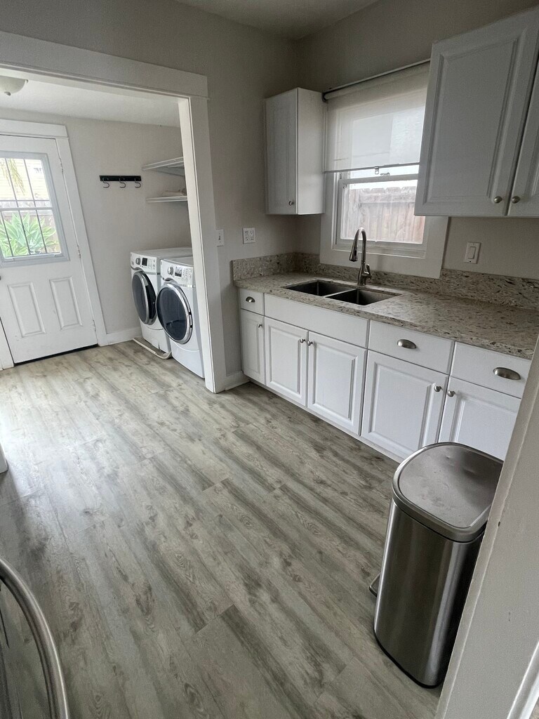+-836 Square Feet -2 Bedroom -1 Bath -Vinyl Plank Flooring -New Interior Paint -Stainless Steel Appliances -Washer/Dryer, Refrigerator, & Stove. -Alley Access -Big Backyard -Auto Parking -RV or Boat Parking -Dogs Ok