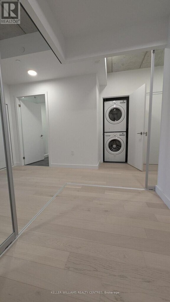 Experience refined boutique living in this modern,new and accessibly friendly 2bed+Den,2-bath residence in one of Toronto's most desirable neighbourhoods. Offering a total of 981 SF. of living space,this home blends comfort with simplicity. Experience an open-concept layout with light plank hardwood flooring throughout,exposed concrete ceilings,and floor to ceiling windows that let the setting sun flow throughout. The modern kitchen is compact yet highly functional,with integrated appliances and clean lines. The primary suite offers a floor to ceiling windows,a walk-in closet completed with a 4-piece ensuite. The 2nd washroom showcases a frameless glass shower,rainfall shower head,and modern vanity. The stacked,full size,in-suite laundry closet adds convenience. Outdoor living space can be enjoyed year round by a covered terrace complete with hose bib and natural gas hook up for your BBQ or favorite fire feature.Amenities include a 24-hour concierge,complete fitness centre w children's play area,a co-working business centre with available private rooms,an outdoor terrace with BBQ,as well as a pet washing station. Conveniently situated steps to the Leaside LRT,boutique shops,cafes,restaurants,parks,and top-rated schools. This is an exceptional opportunity for those seeking a modern,well-appointed home in a vibrant yet established community. (id:52069) ID#: 2002776