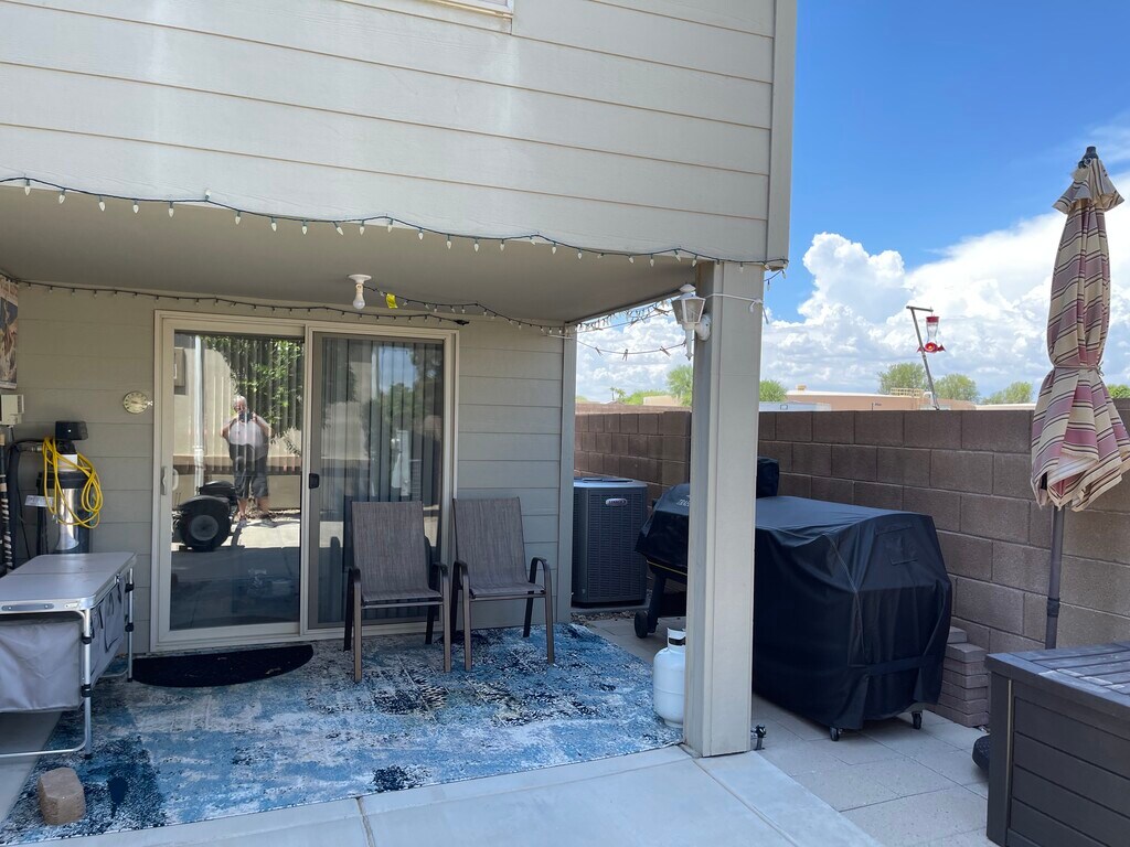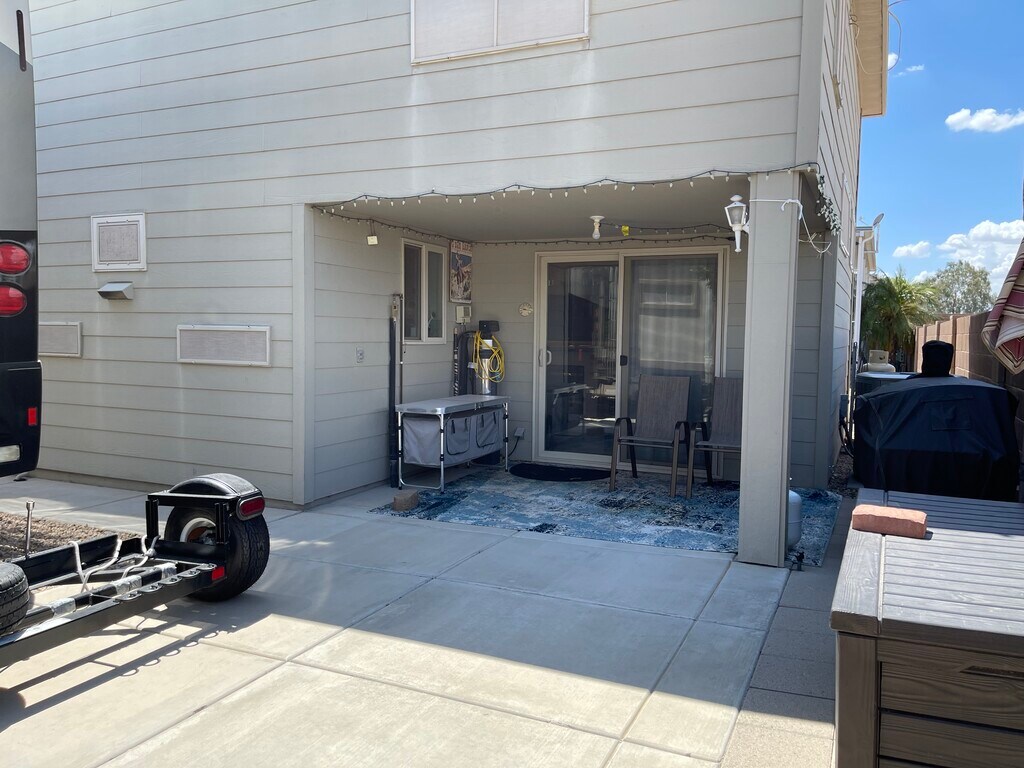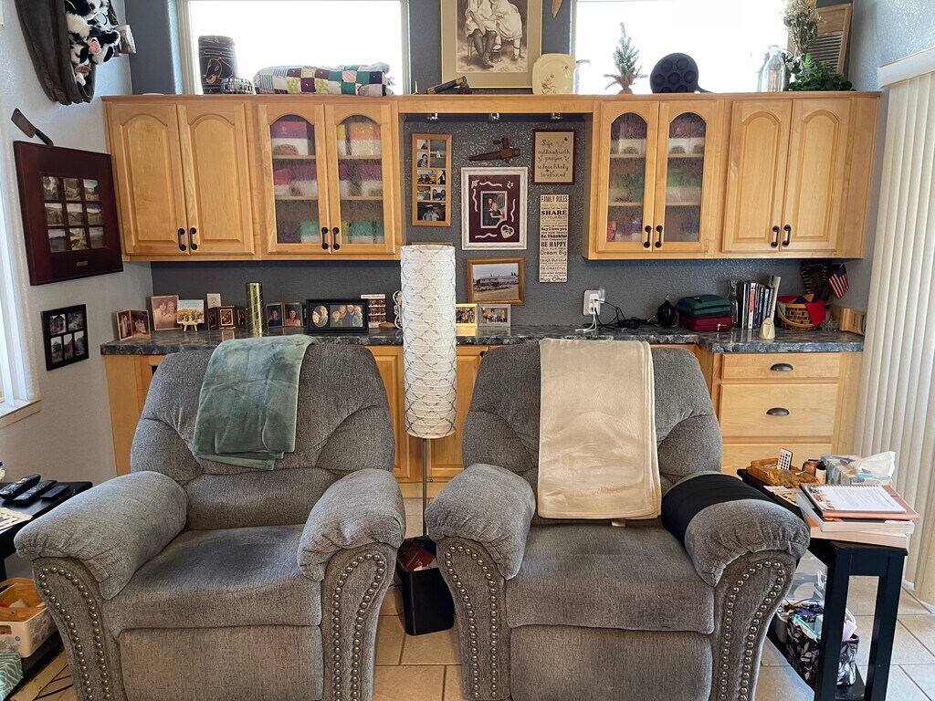 A GOLF COURSE RUNS THROUGH IT! Seasonal Rental November & December still available! HURRY!! This property at 17200 West Bell Rd. in Surprise, Arizona is in the Happy Trails Resort Community. Great little house in a gated active adult (supper fun) community in the heart of everything that goes on. Fully furnished, well equipped kitchen & dining ware. Only 4 miles to the nearest spring training game. Sam’s Club and Costco within 3 miles. Great food and entertainment nearby, with golf out your back door. This house is a site built, it is not a park model. It is designed with a large parking lot that can have a class A RV on it if you have this need, but only a class A RV. If you don’t have an RV, then there’s plenty of parking. Everything you need, master bedroom and bathroom, kitchen, laundry, family room, and of course patio access. There is an upstairs that will be partially available. It includes a bedroom with a full bath and a craft room of sorts, additional pictures available. It’s a very comfortable house! Gas fireplace, ceiling fans. The television set is adjustable so it can be watched from the table or the reclining chairs, or of course the kitchen. The patio will include outside cooking options. These photos are taken during a time when we are living in the house. Please account for that as you enjoy looking at the pictures. This is a 55+ community that requires at least one of the residents to be a minimum of 55 years old. The second resident must be at least 40 years old. Maximum of two persons per address. Must abide by the covenants and restrictions of Happy Trails.