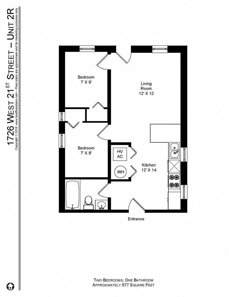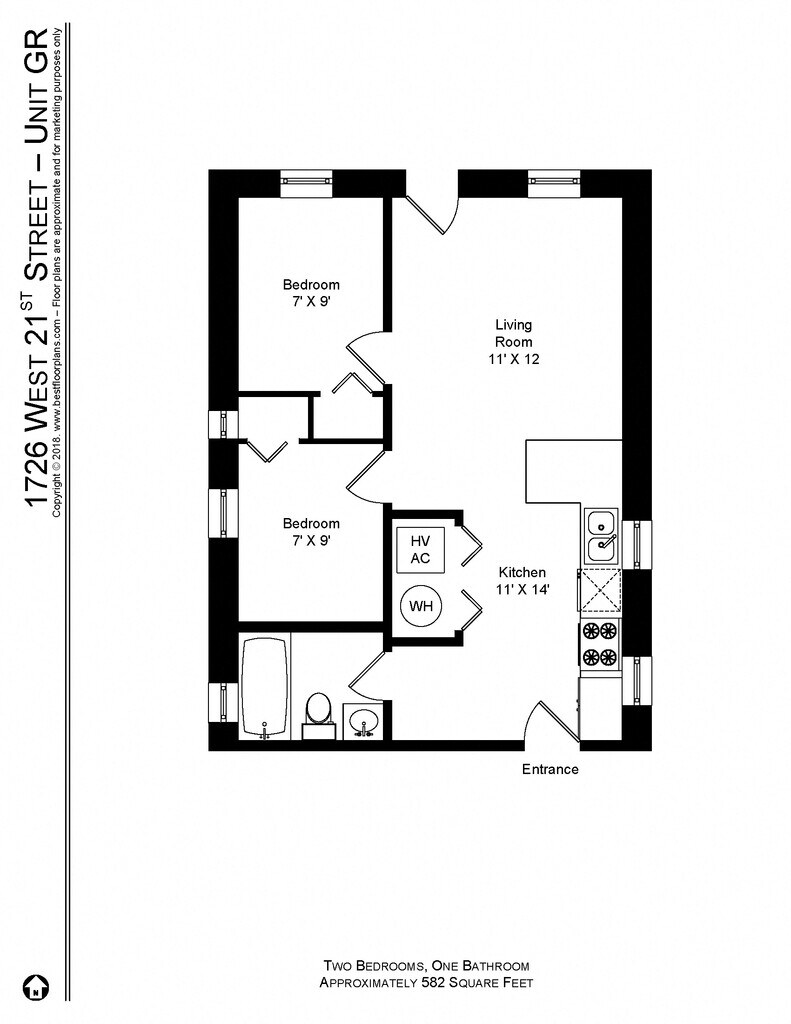 2 Beds, 1 Bath, 582 sq ftAvailability Details