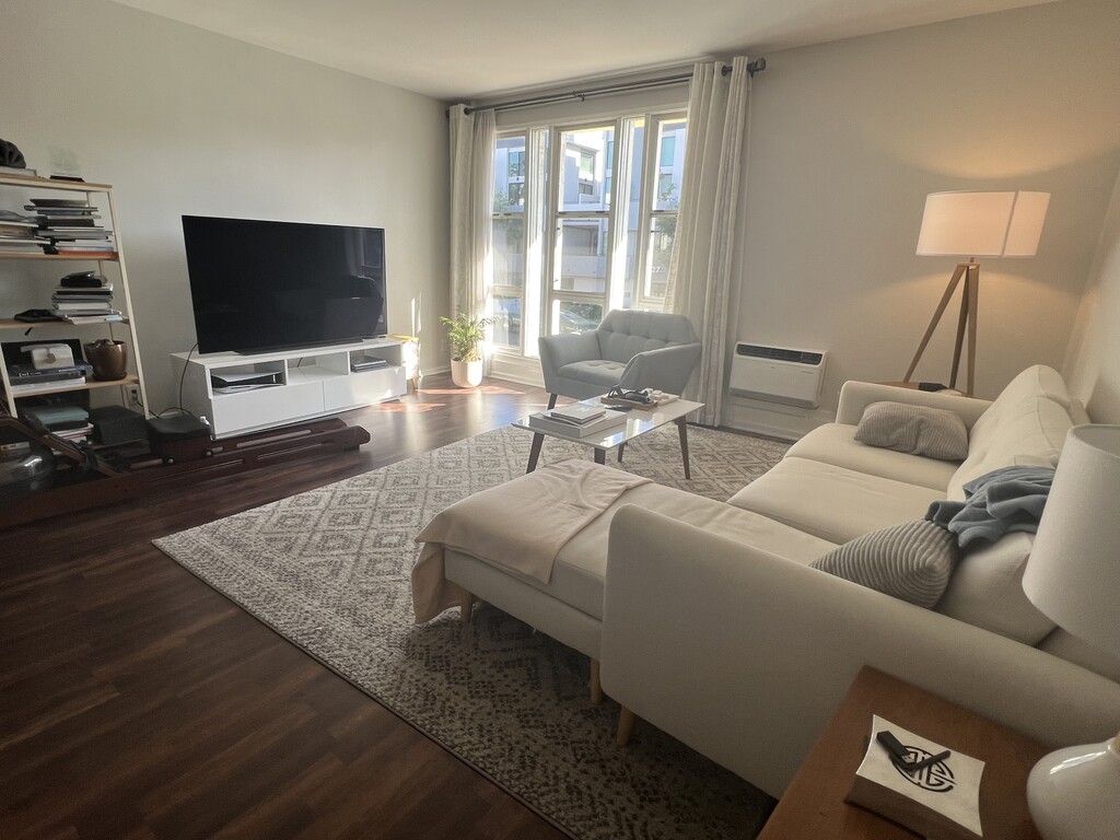 Beautiful Westwood 90024 neighborhood - Top Floor with balcony-1BR/1BA/2 Parking spots (tandem), storage unit, hot/cold water included in rent. Some pets allowed, call for details. Light-filled units, with distinctive floor-to ceiling windows. Tree-lined, uncongested street, yet very close walking distance to everything.(Sprouts, Bristol Farms, 99 Ranch, Starbucks, many restaurants, etc). Easy street parking for guests. Remodeled units with floor to ceiling windows, wood floors (colors vary (dark or light). Short distance to UCLA campus, multiple bus stops within walking distance. -Balcony -Elevator -Intercom access/controlled entry building. -Wood Floors -All stainless steel kitchen appliances included (stove, fridge, microwave, D/W, disposal). -A/C -Walk-in closet in Principal Bedroom -On-site laundry facilities -Owner pays hot and cold water/trash -Hardwood or hardwood style laminate floors-colors vary among units. -Beautiful granite style counter-tops and mosaic back splash. -Controlled access building with Intercom. -Large wardrobe-style closet in secondary bedroom -Linen closet -Large extra storage space included in rent -Redwood sundeck at back of building -1 block to all public transportation, easy commute/access to UCLA, very short walk to restaurants, grocery stores, Starbucks and many restaurants, yet quiet street. -Dogs and cats allowed, No extra pet deposit or rent....not all breeds of dogs allowed. Call for more info -no-smoking building -Security deposit=1 month rent -Photos are of a variety of units in the building and may not be of the exact unit available. Call for more photos of exact unit. Call/Text/email for appointment to view.