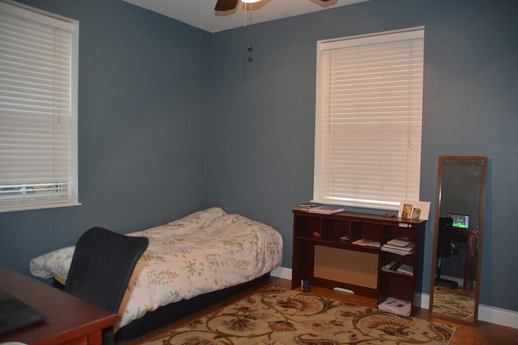Own spacious bedroom with lots of sunlight and a closet. Bedroom is unfurnished save for a dresser but a twin bed is available. Common areas include bathroom, living room, kitchen and a storage space. Common area spaces are furnished.