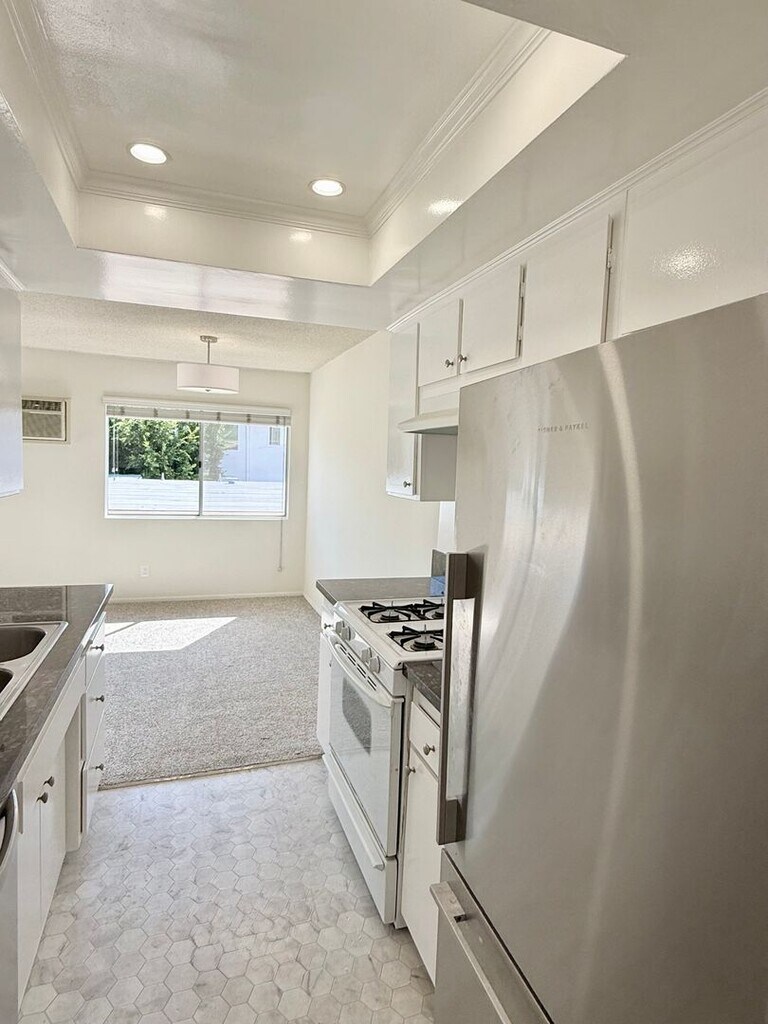 1750 Bentley Ave. #206, Beautiful 2 Bedroom 2 Bath, Gated Building with Intercom Entry, Upper, Top Floor Apt, Kitchen and Bathrooms with Granite Countertops, All Appliances, Dishwasher, Stove, and Stainless Steel Fisher Paykel Refrigerator, Gas Fireplace, with Custom Brick Details, Patio off of Master Bedroom, Wall Air Conditioner, New Upgraded Luxury Carpets, Large Walk In Closets, 2 Gated, Side by Side Parking spaces available for $50 each Laundry Room, Video Tour available on website, Showings Daily by appointment, 1 yr lease, No Smoking on Premises, Online applications available on our website, vlproperties dot com