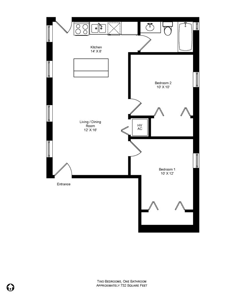2 Beds, 1 Bath, 732 sq ftModel Gallery