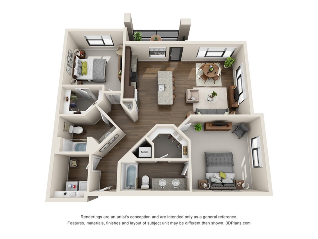 2 Beds, 2 Baths, 1364 sq ftAvailable NowLargest 2 BedroomThis is the largest 2 Bedroom at this PropertyModel Gallery